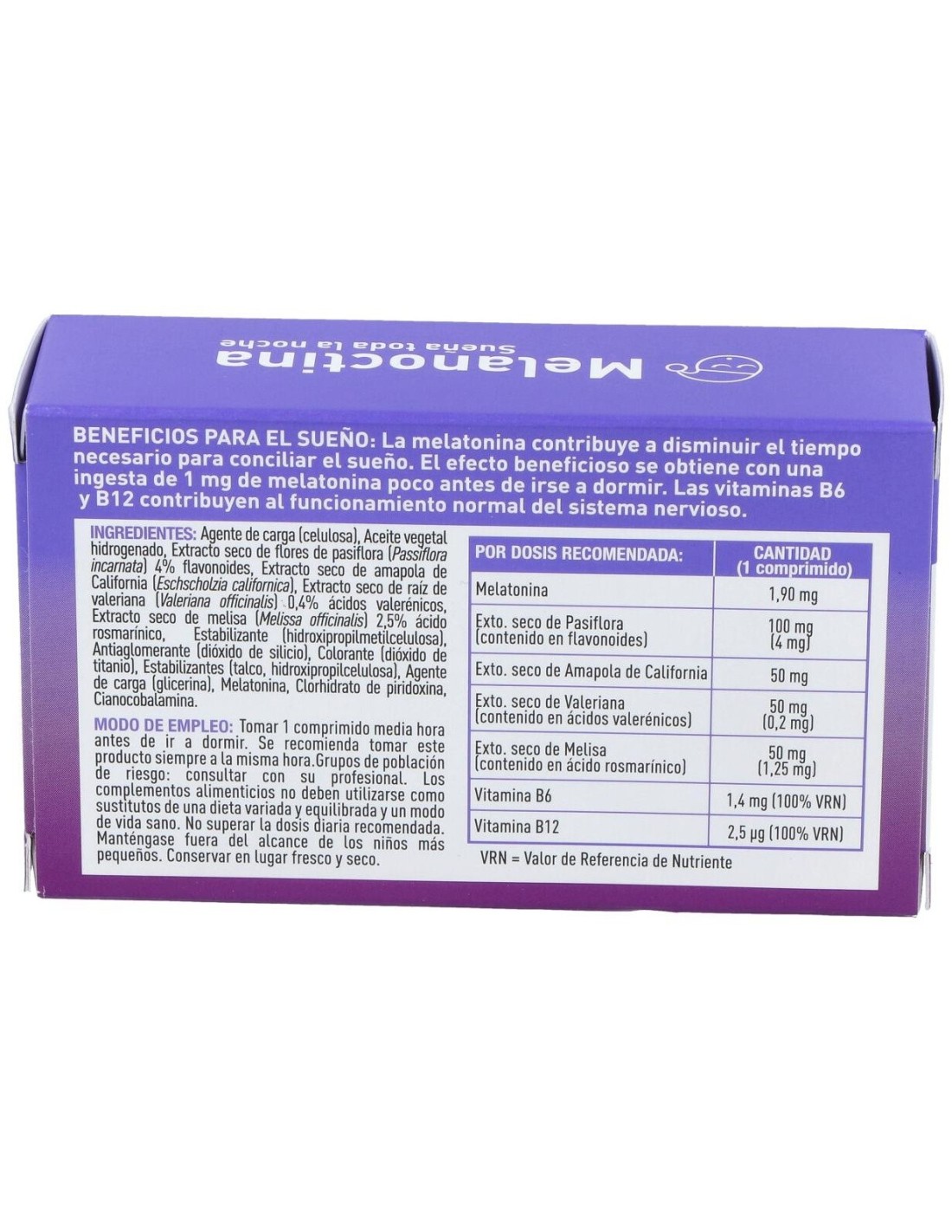 Cuenta con una tecnología bicapa: una capa exterior de liberación rápida que contiene 1,9 mg de Melatonina para conciliar el sueño, y otra capa interior de liberación retardada con extractos de Pasiflora, Amapola de California, Valeriana, Melisa y Vitaminas B6 y B12 para prolongar el sueño.