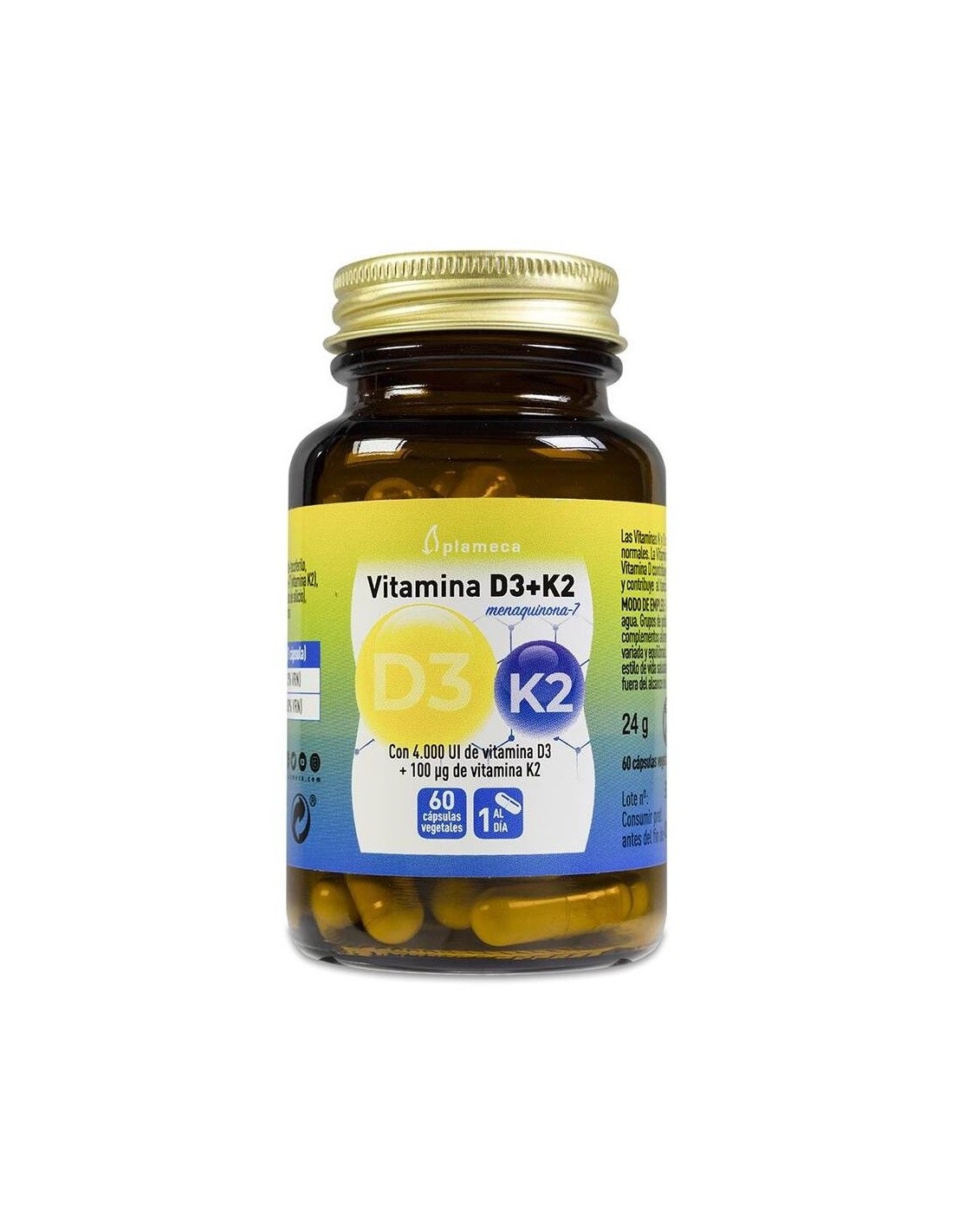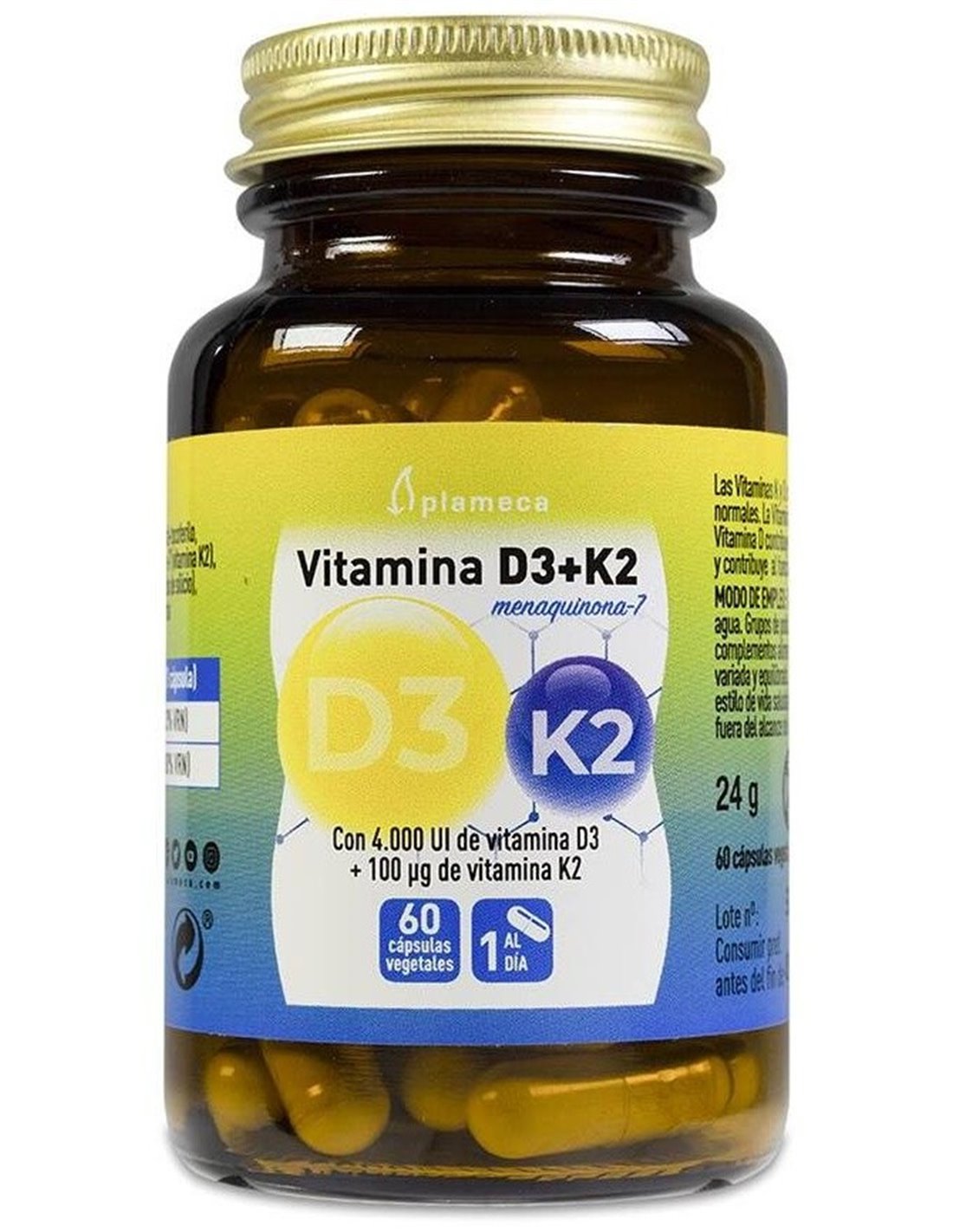 Vitamina D3+K2 60 Cápsulas Vegetales de Plameca
