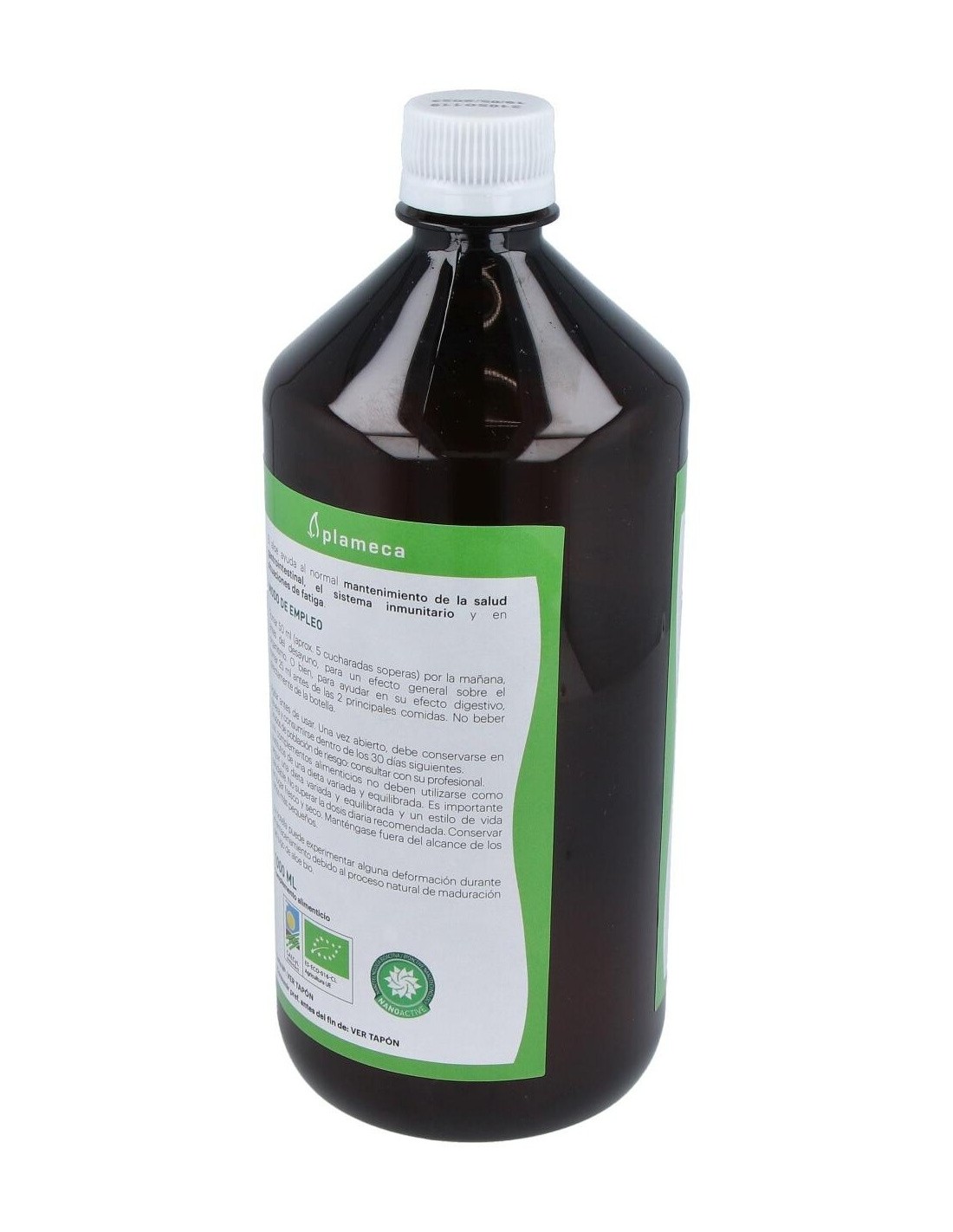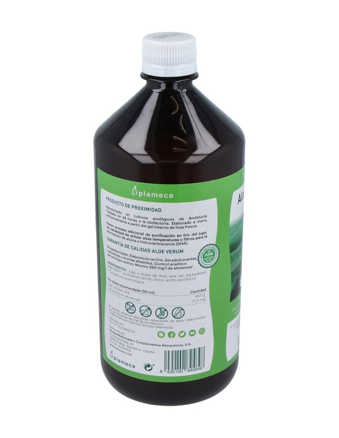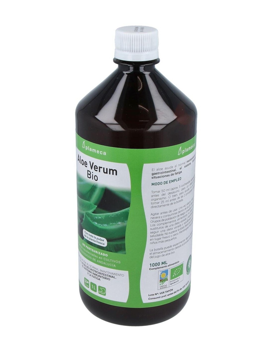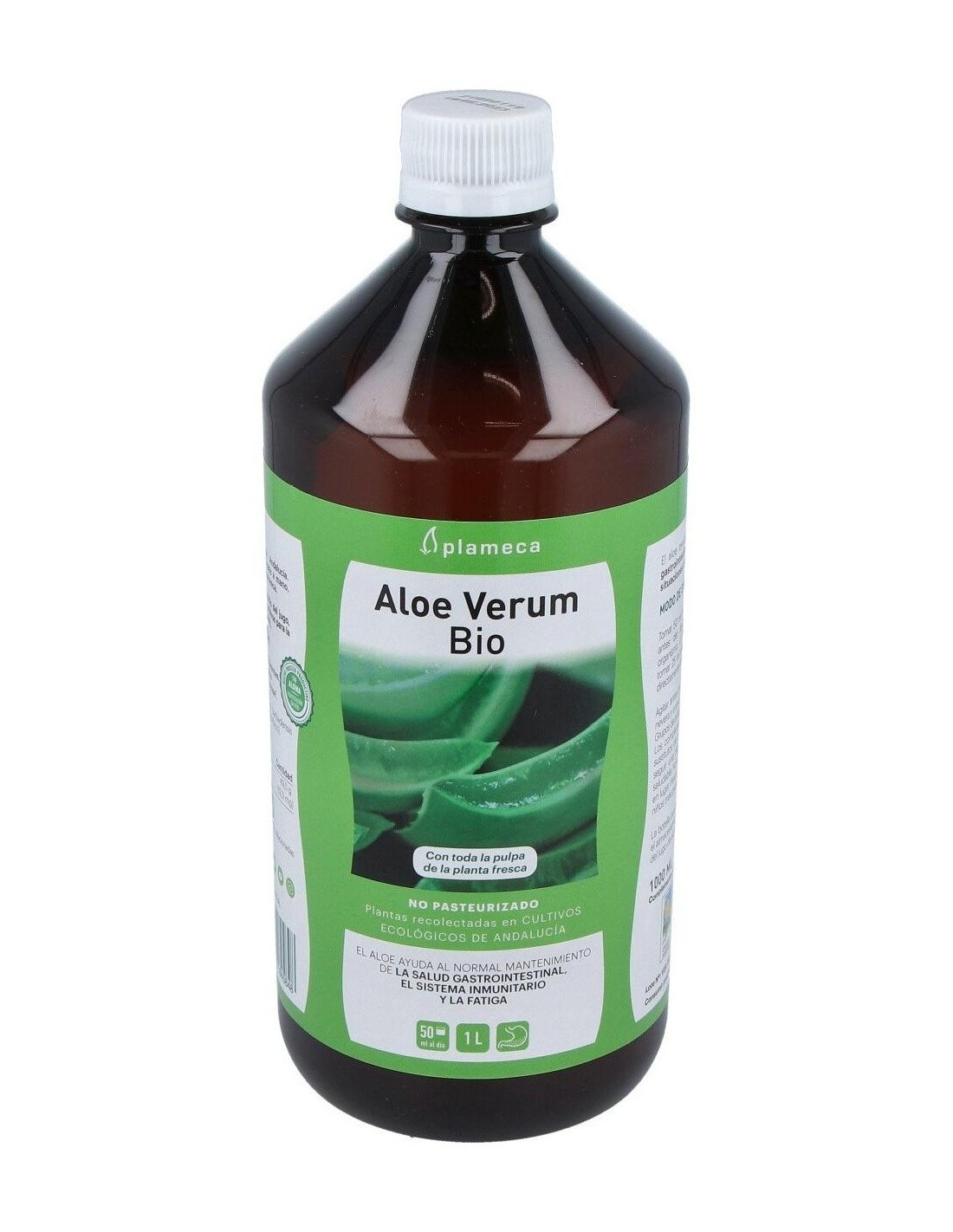 2. Análisis por Spectral Services (Alemania). Debido a la ausencia de colorantes y saborizantes, el consumidor puede observar pequeñas variaciones de sabor relacionadas con las diferentes épocas de recolección.Ingredientes:Jugo y pulpa de Aloe vera var. barbadensis Miller 99%, acidulantes (ácido cítrico y ácido ascórbico).Modo de empleo:Tomar 50 ml por la mañana, antes del desayuno, para un efecto general sobre el organismo. O bien, para potenciar su efecto digestivo, tomar 25 ml antes de las principales comidas.Presentación:Envase de 1 litro.Recomendación y advertencias:No contiene gluten ni lactosa.
