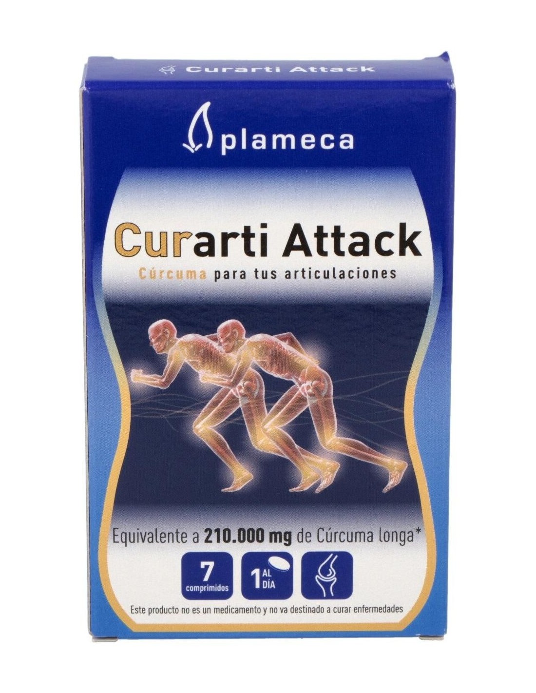 Agente de carga (celulosa), Curarti® Complejo soluble de betaciclodextrina (humectante) y curcumina (extracto de rizomas de Cúrcuma -Curcuma longa- normalizado), Agente de carga (fosfato de calcio), Ácido L-ascórbico (vitamina C), Estabilizante (carboximetilcelulosa sódica entrelazada), Antiaglomerantes (sales magnésicas de ácidos grasos, dióxido de silicio). Agente de recubrimiento: Hidroxipropilmetilcelulosa, Celulosa, Ácidos grasos y Colorantes (dióxido de titanio y óxido de hierro).