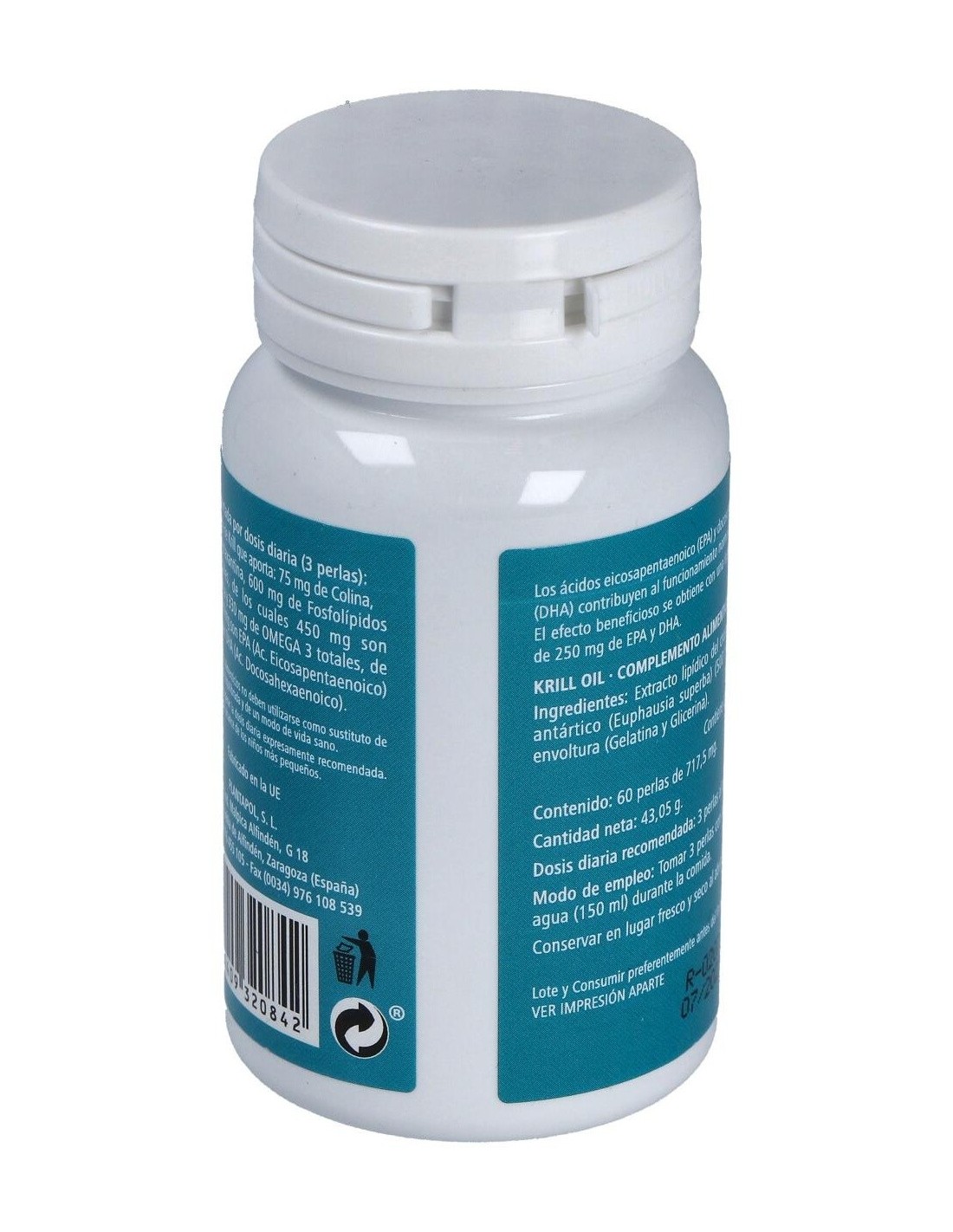 Complemento alimenticio en forma de cápsulas, elaborado a base de aceite de krill, conocido por su perfil único de ácidos grasos que incluye EPA y DHA, además de fosfolípidos, que está indicado para ayudar a mantener la comodidad de las articulaciones y a regular los niveles saludables de lípidos y colesterol en sangre.El aceite de krill contiene además carotenoides, que ayudan a reforzar el sistema inmunitario.