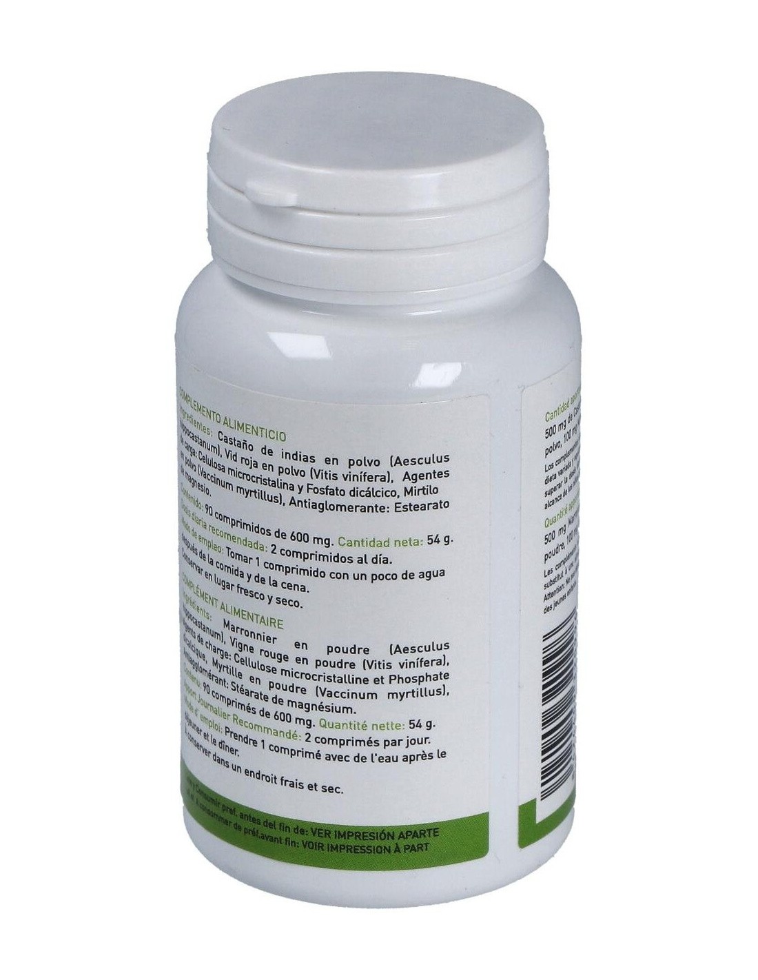 Los comprimidos están diseñados para ofrecer una dosificación cómoda y precisa, facilitando su incorporación en la rutina diaria. La combinación de castaño de indias, vid roja y myrtilo responde a criterios de selección basados en su perfil botánico y composición. Este producto se presenta en un envase que protege la calidad de sus ingredientes durante su almacenamiento.