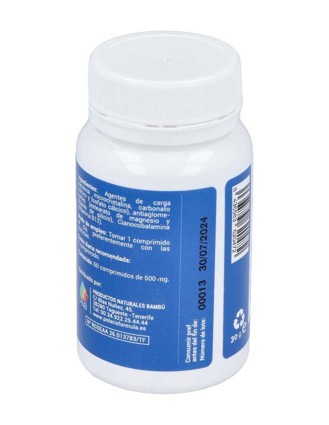 Complemento alimenticio natural formulado a base de vitamina B12. Bote de 60comprimidos de 500mg. Favorece el correcto desarrollo y mantenimiento celular. La vitamina B12 contribuye activamente en la producción de ADN. Indicado para adultos.