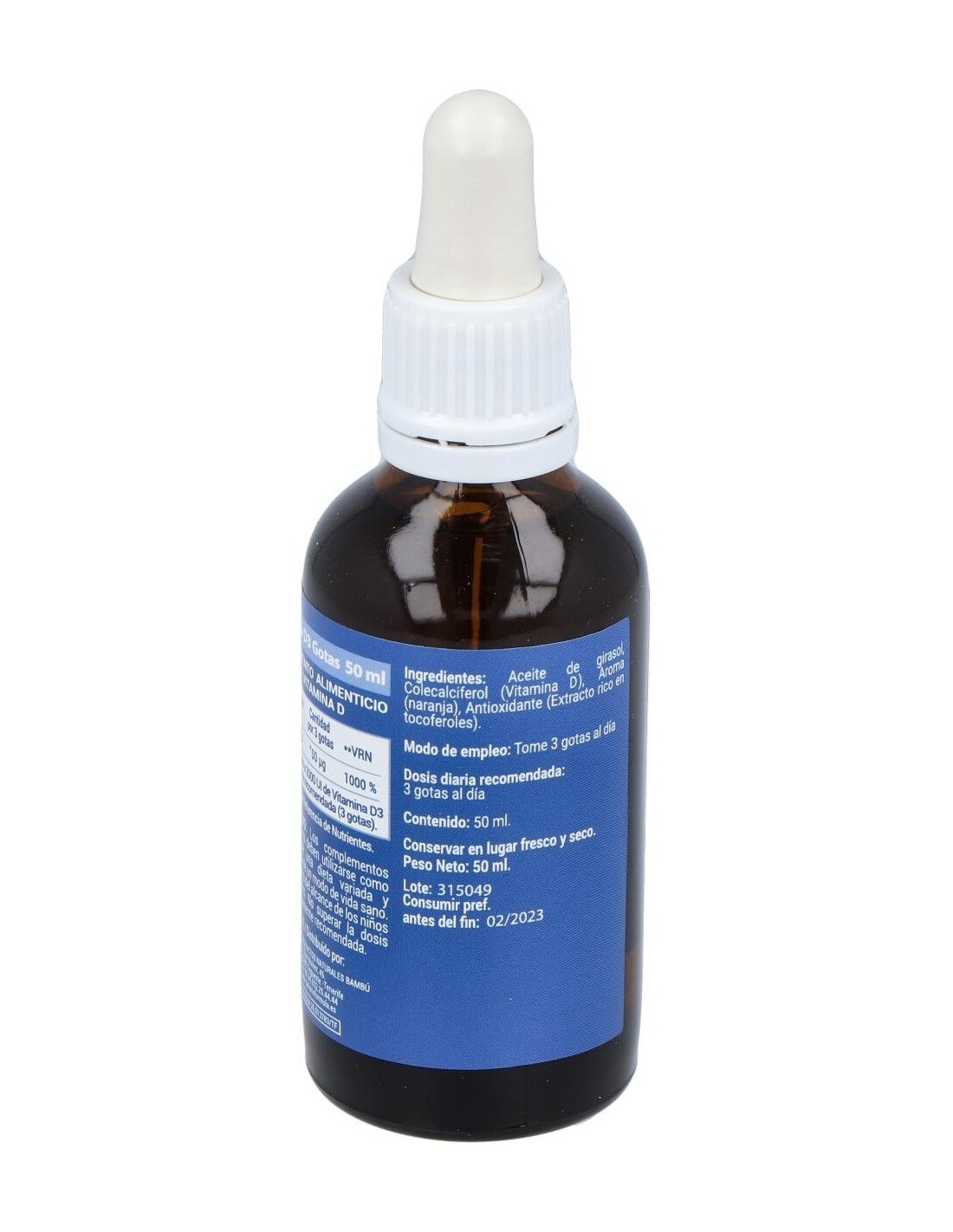 Complemento alimenticio a base de vitamina D. Sabor a naranja.