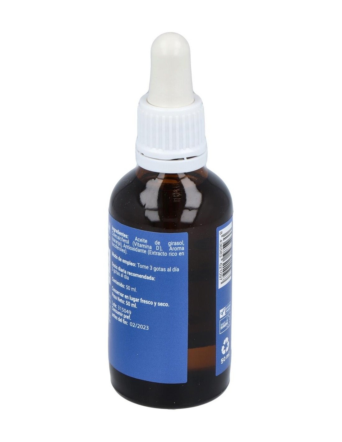 Aceite de girasol, colecalciferol (vitamina D), aroma (naranja), antioxidante (extracto rico en tocoferoles)