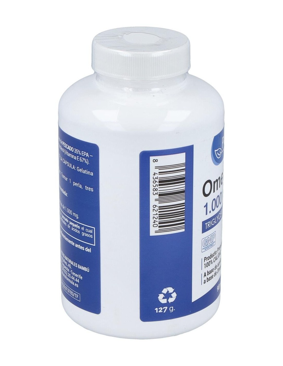 Aceite de pescado 18EPA/12DHA, agente de recubrimiento (gelatina y glicerina). Indicaciones: Complemento alimenticio a base de aceite de pescado rico en ácidos grasos poliinsaturados.
