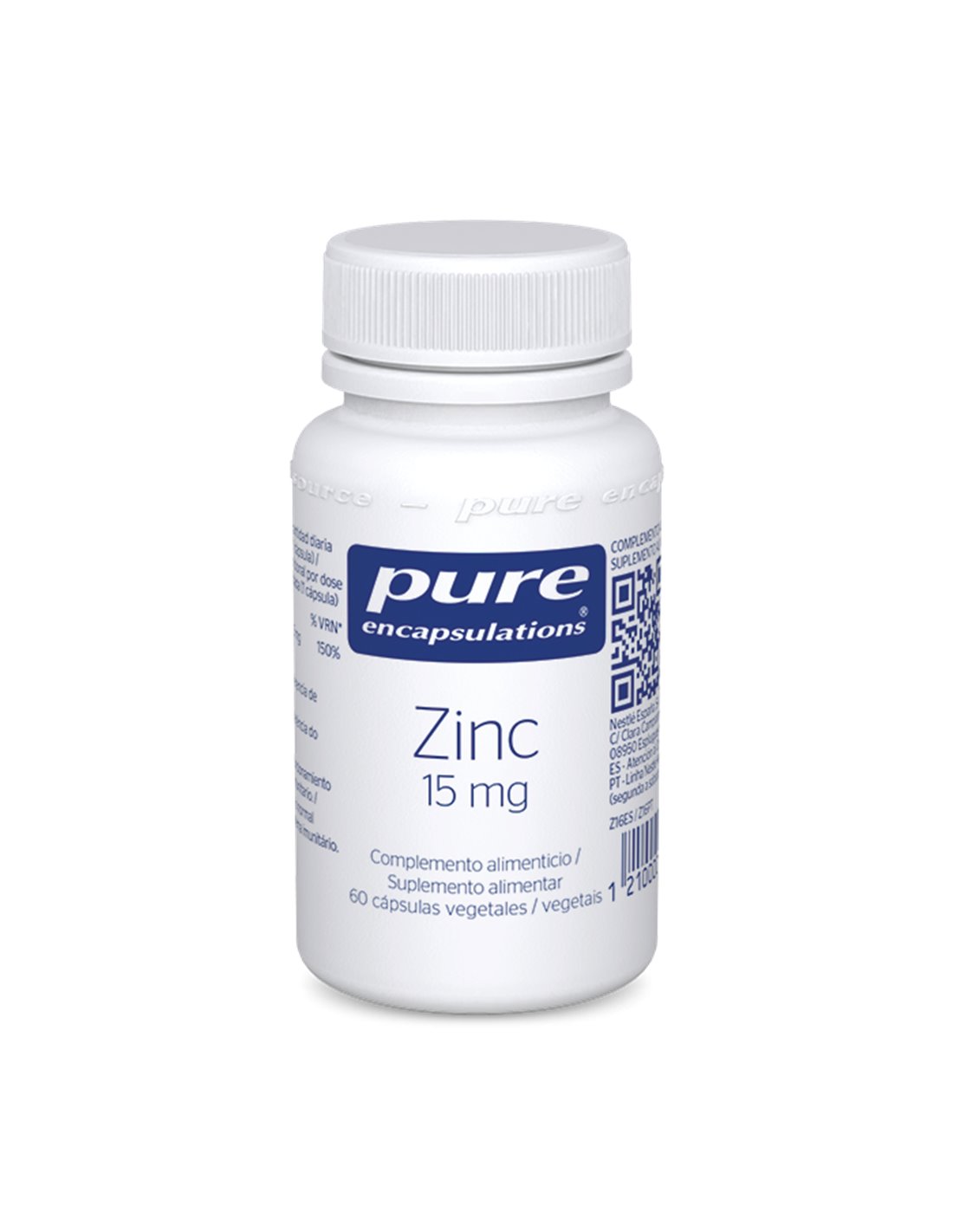 PURE ENCAPSULATIONSProporciona cantidades significativas de zinc altamente biodisponible, el cual contribuye a un funcionamiento normal del sistema inmunitario, a la protección de las células frente al daño oxidativo y apoya la fertilidad y la reproducción normales.