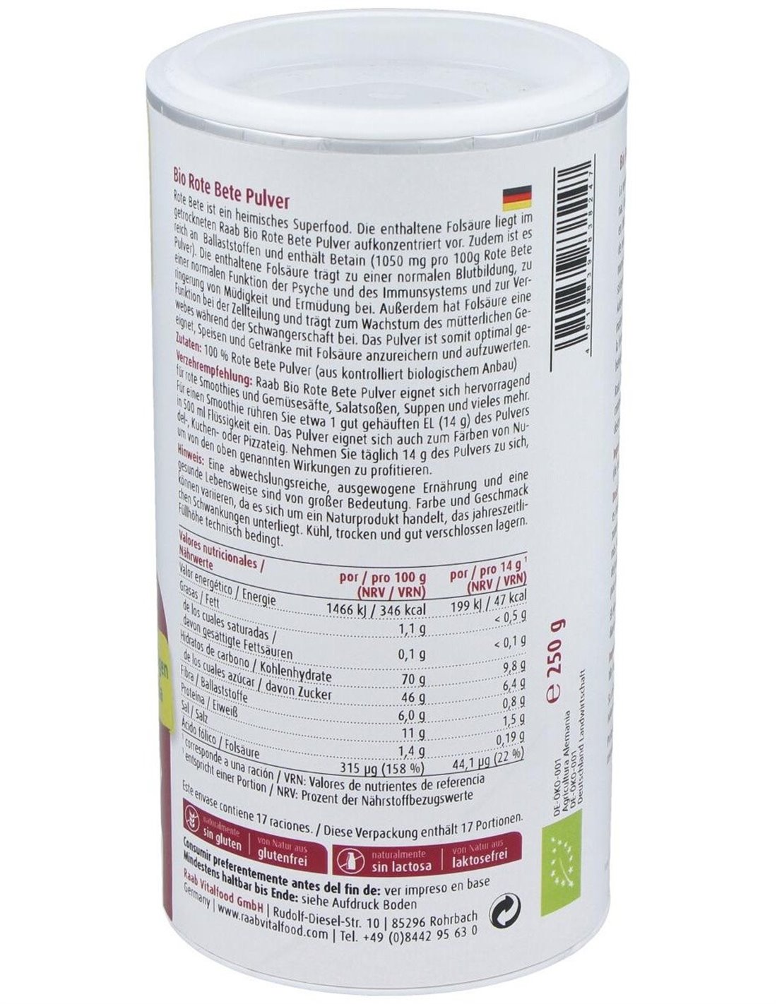 Remolacha Roja Polvo 250Gr. Bio Sg Vegan de Raab Vitalfood