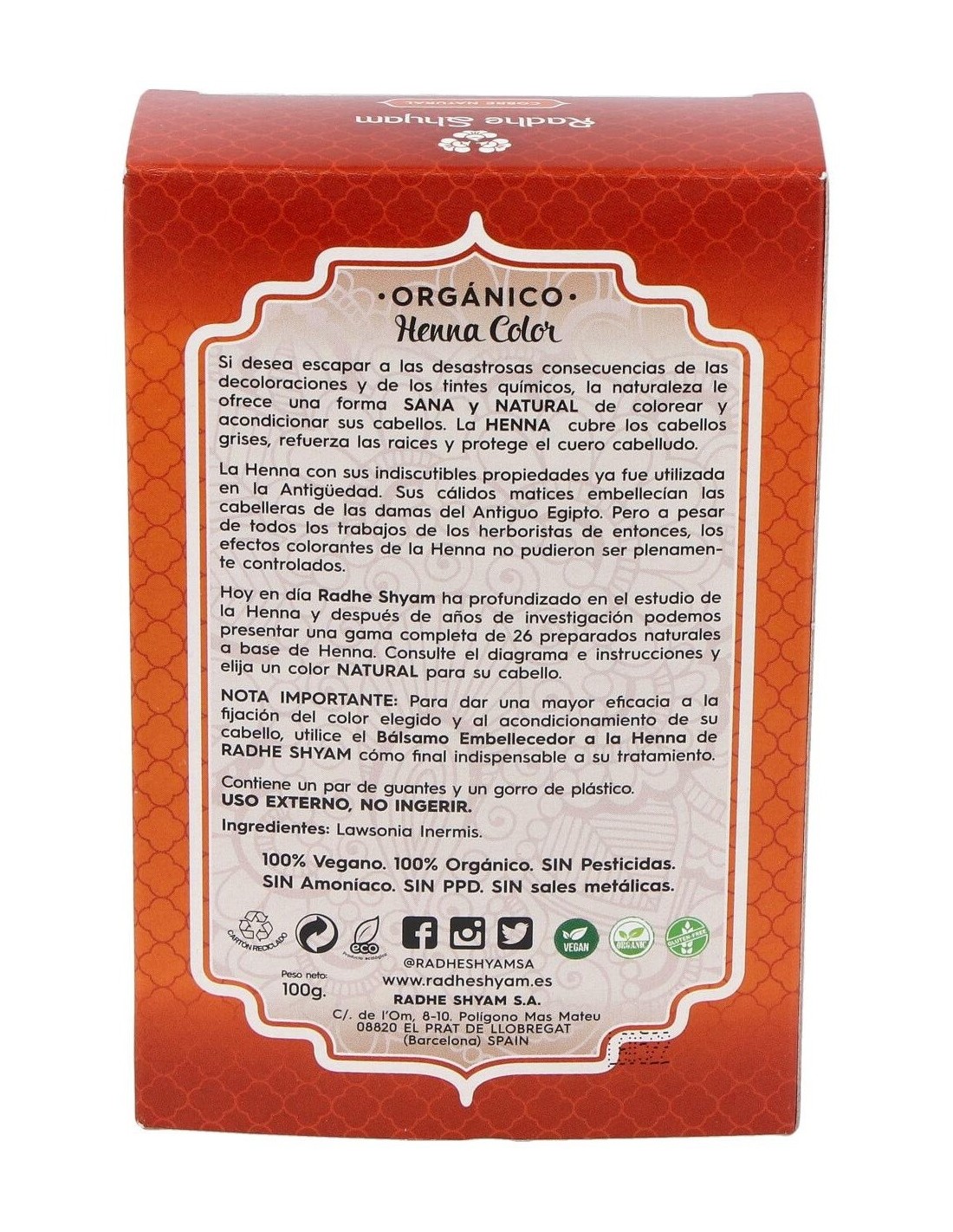 HENNA POLVO COBRE NATURAL 100gr de RADHE SHYAM