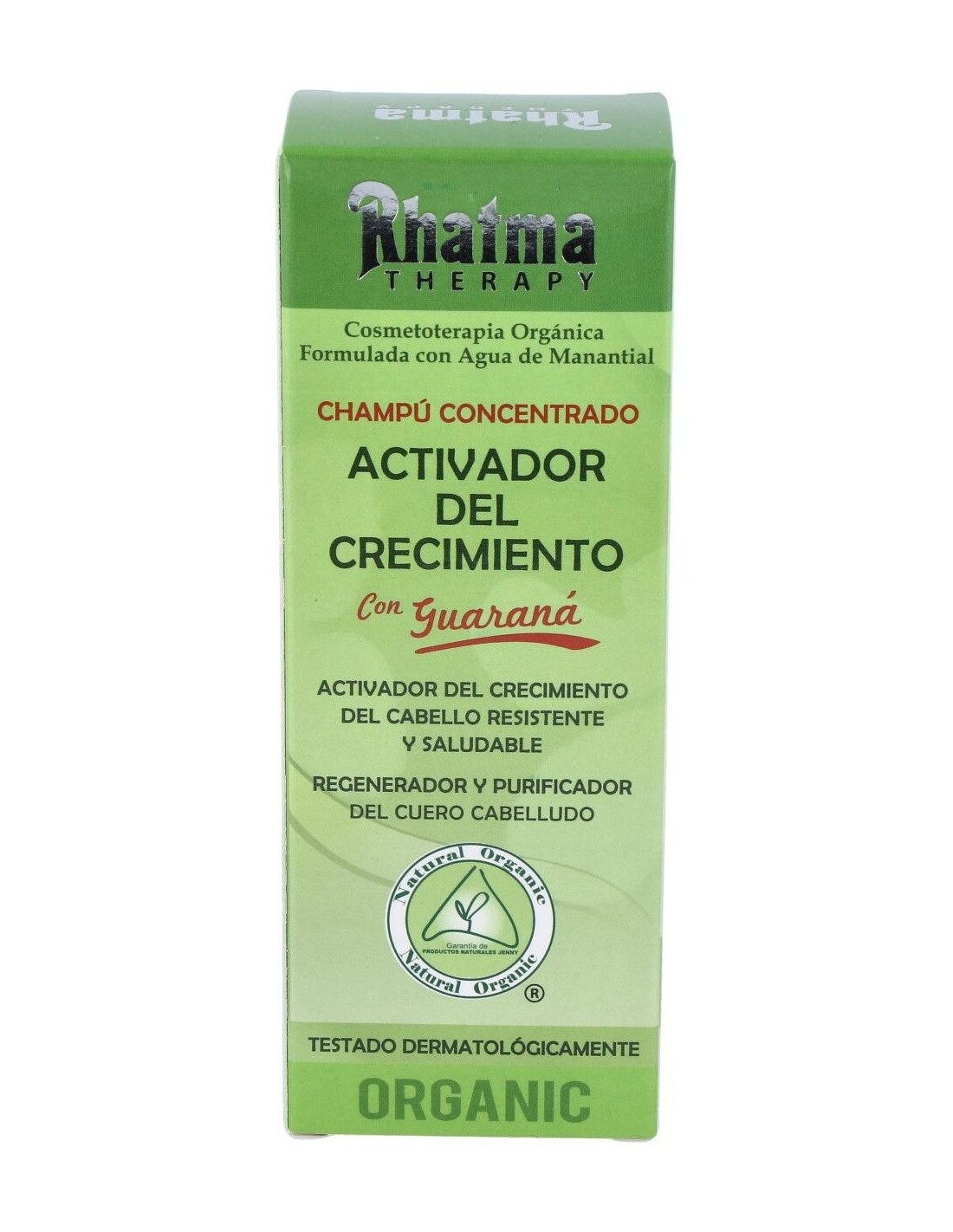 Rhatma champú activador crecimiento es un rico limpiador natural, formulado a base de guaraná, que consigue sanear y reparar los cabellos débiles o quebradizos. Regula y controla la caída de cabello, especialmente en determinadas épocas del año o tras el cepillado, para que se vuelva más resistente y fortalecido.