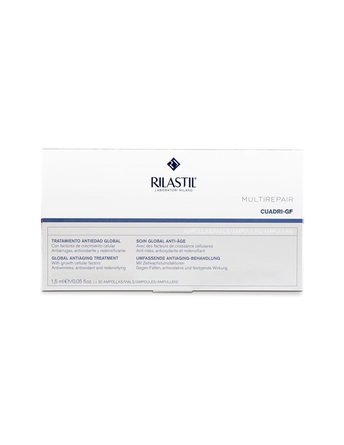 Concentrado antiedad global en monodosis que proporciona un tratamiento de intensiva acción reestructurante, reparadora y redensificante de la piel. Inspirado en la medicina regenerativa, su innovadora fórmula combina 4 factores de crecimiento (growth factors) orientados a reactivar el metabolismo celular y mejorar así los mecanismos de reparación, comunicación, diferenciación y regeneración celular. Incorpora un efecto tensor inmediato.