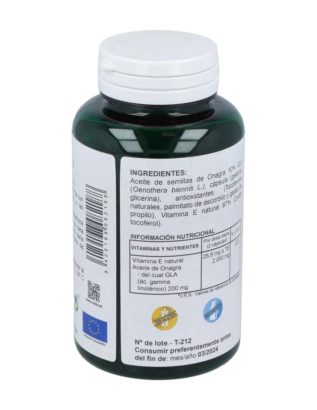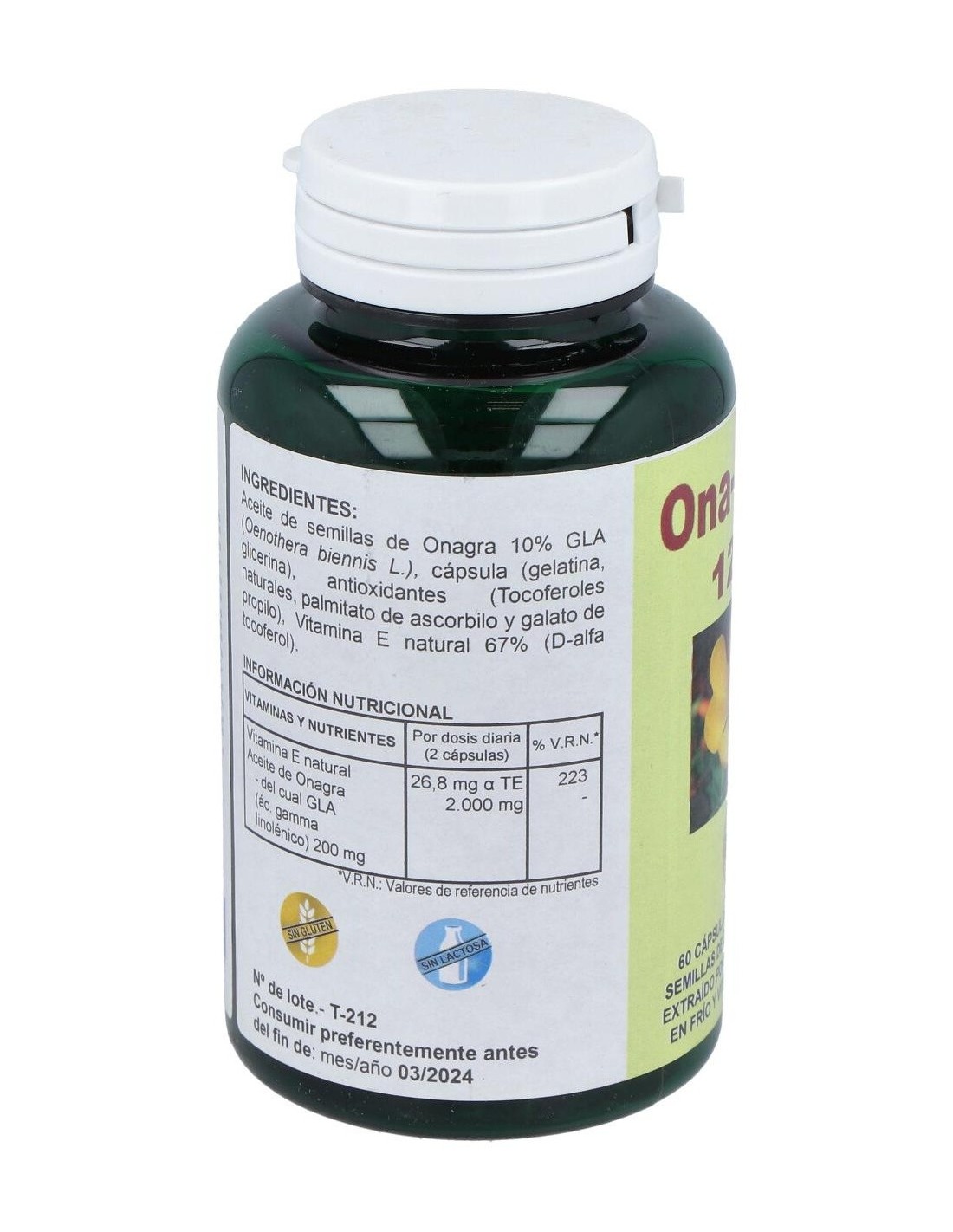 Es un suplemento alimenticio de aceite de onagra, extraído por el primer prensado en frío con vitamina E natural.