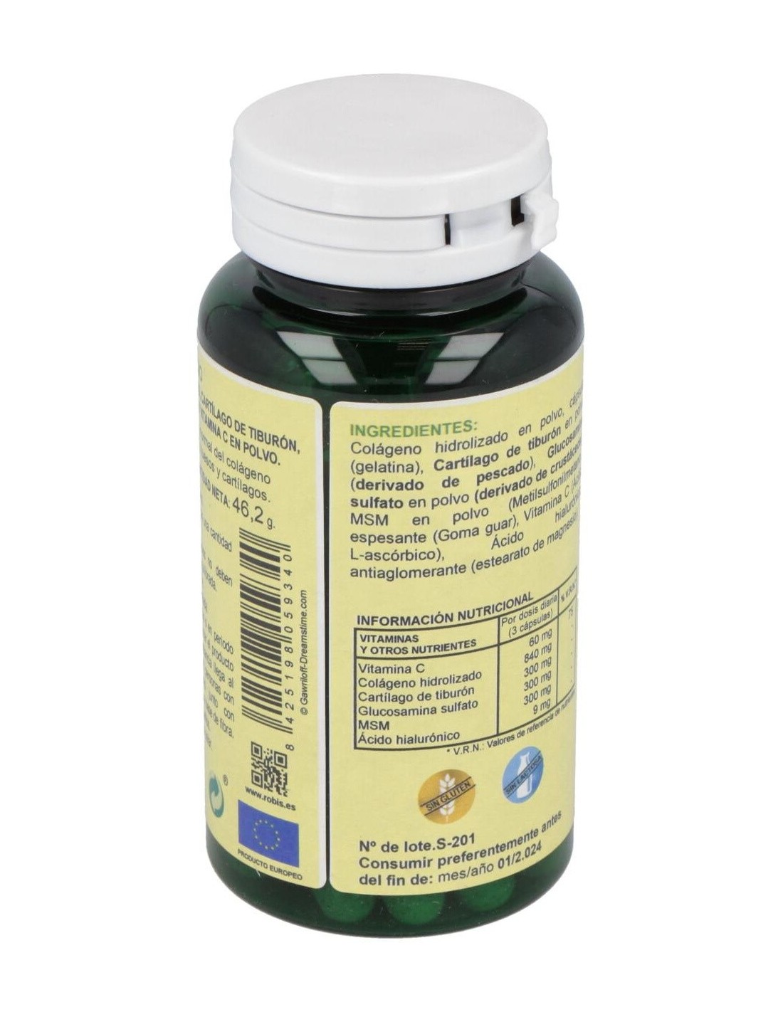 Complemento alimenticio natural que ayuda a estimular la producción natural de colágeno. Proteína que fortalece, especialmente, el sistema articulatorio, la piel, el cabello y las uñas. Es esencial para mantener el buen funcionamiento de organismo. Aporta firmeza a la piel, dureza a las uñas y luminosidad al cabello. Formato de 60 cápsulas.