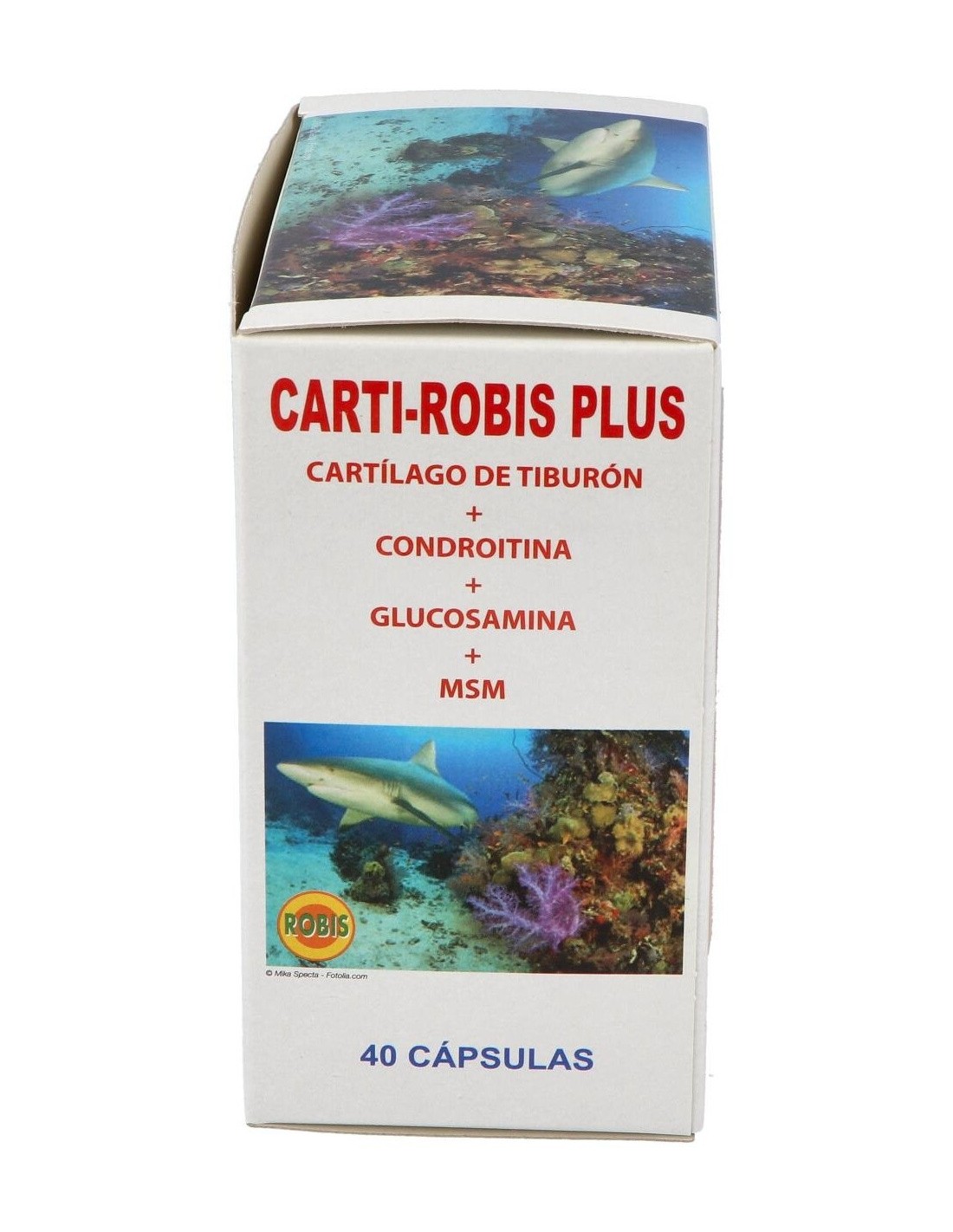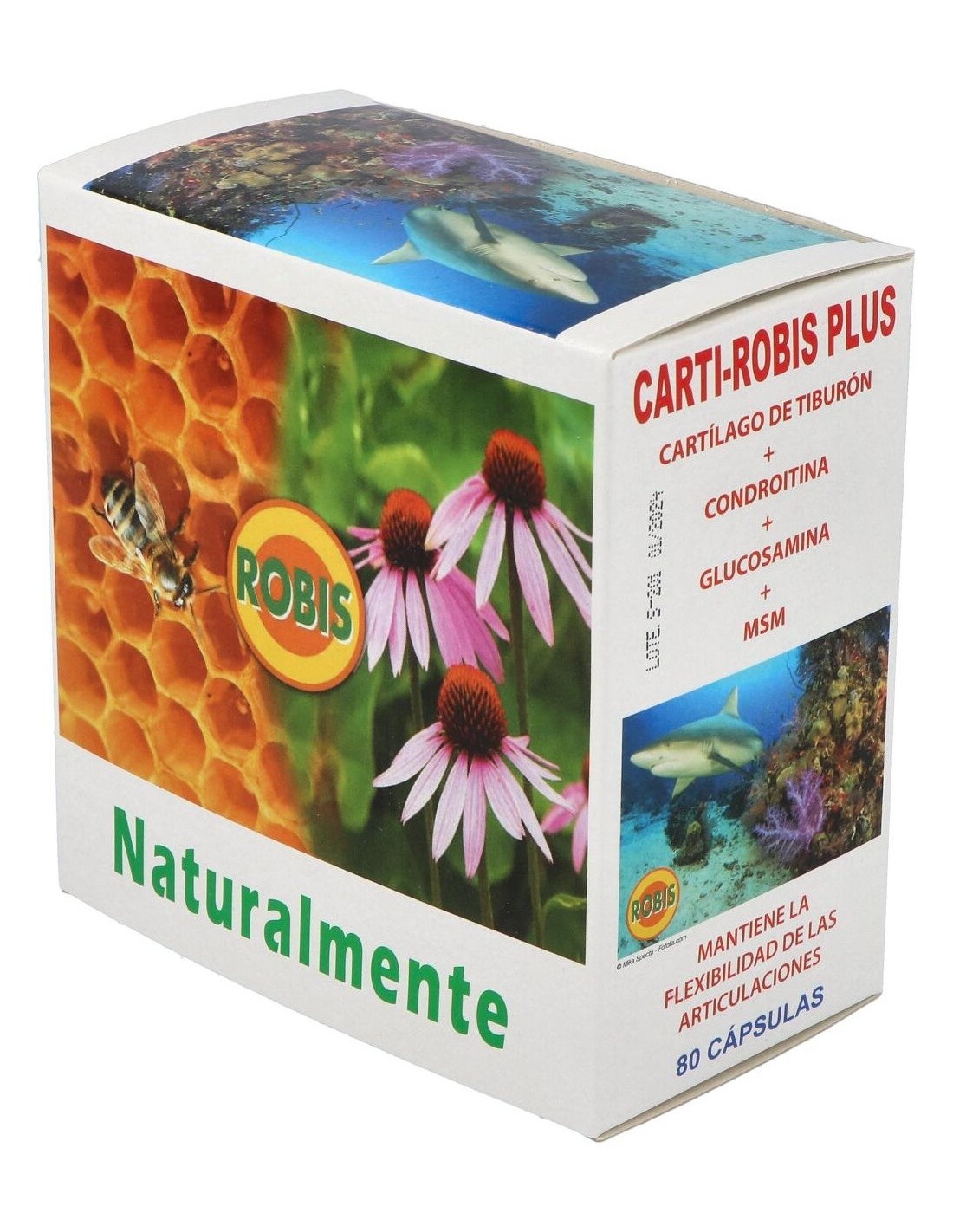 Cartílago de tiburón, Condroitín sulfato, Glucosamina sulfato, MSM (Metil sulfonil metano), magnesio estearato (antiaglomerante) y gelatina (envoltura).