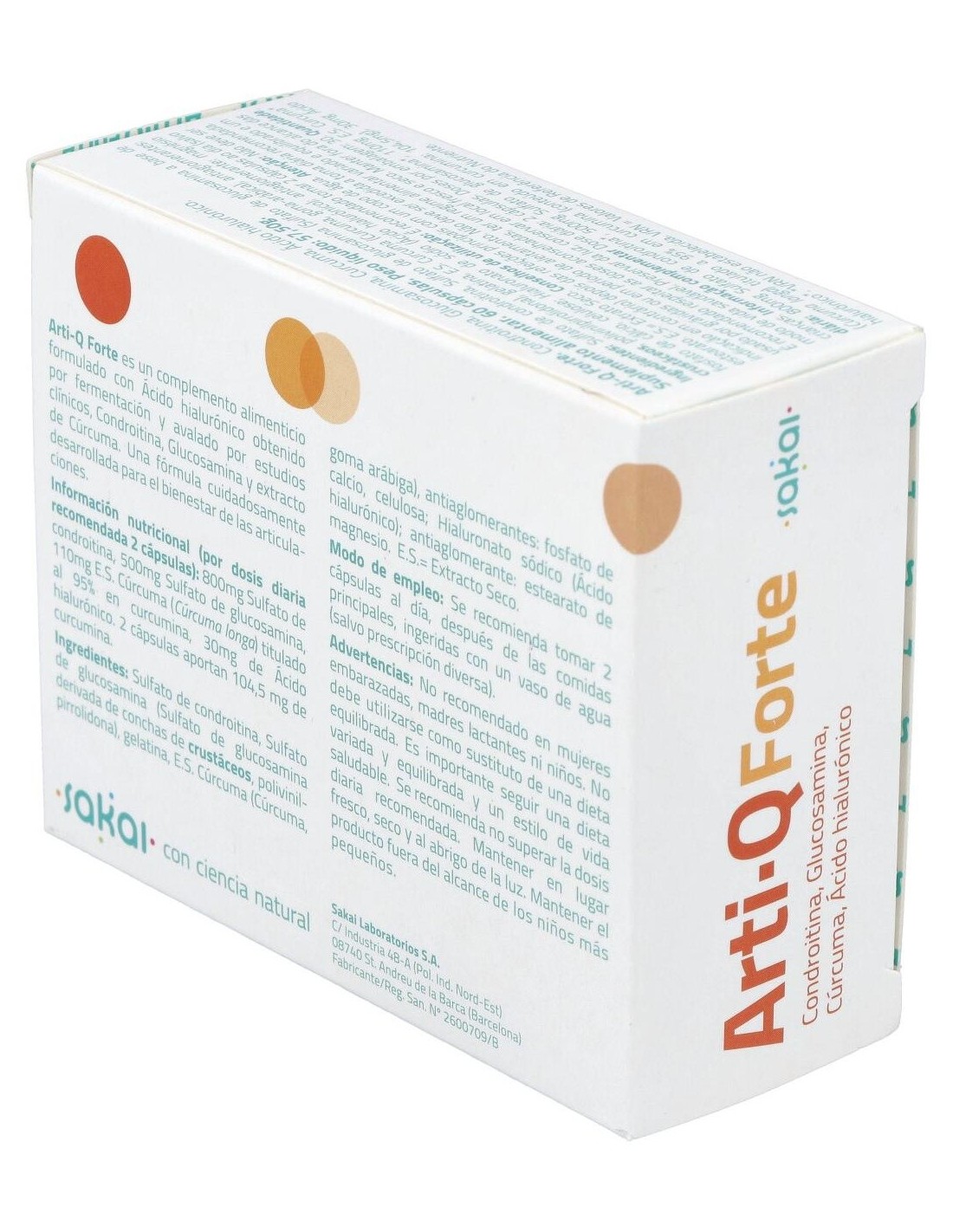 Sakai Arti-Q Forte 60 Cápsulas es un complemento alimenticio a base de condroitina, glucosamina, cúrcuma, ácido hialurónico que contribuye a aumentar la movilidad articular y disminuye las molestias de las articulaciones.