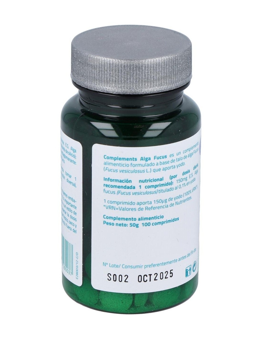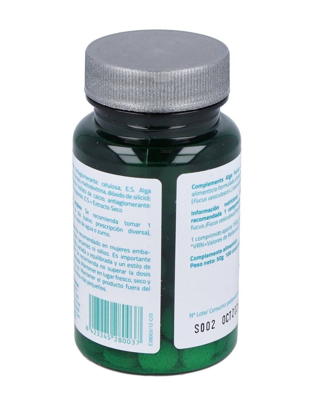 Antiaglomerante: celulosa: E.S. Alga fucus (Alga Fucus planta, maltodextrina): antiaglomerante: calcio fosfato: polvo Alga fucus: antiaglomerante: estearato de magnesio.