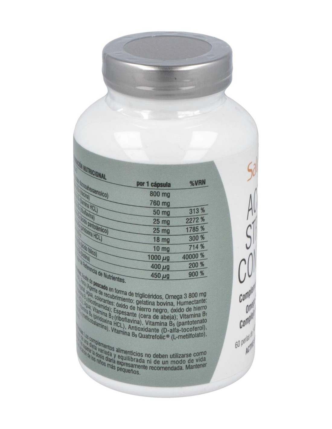 Active Stress Control está indicado para aliviar los síntomas asociados al estrés, el cansancio y la fatiga.Contiene ácidos grasos Omega-3 procedentes