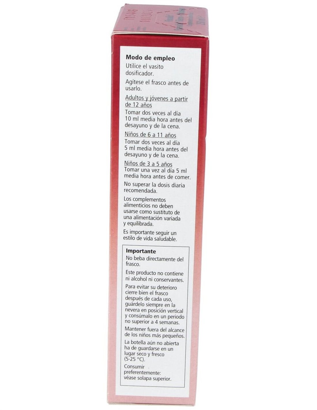 Niños de 6 a 12 años: tomar 2 veces al día 5 ml media hora antes del desayuno y de la cena.