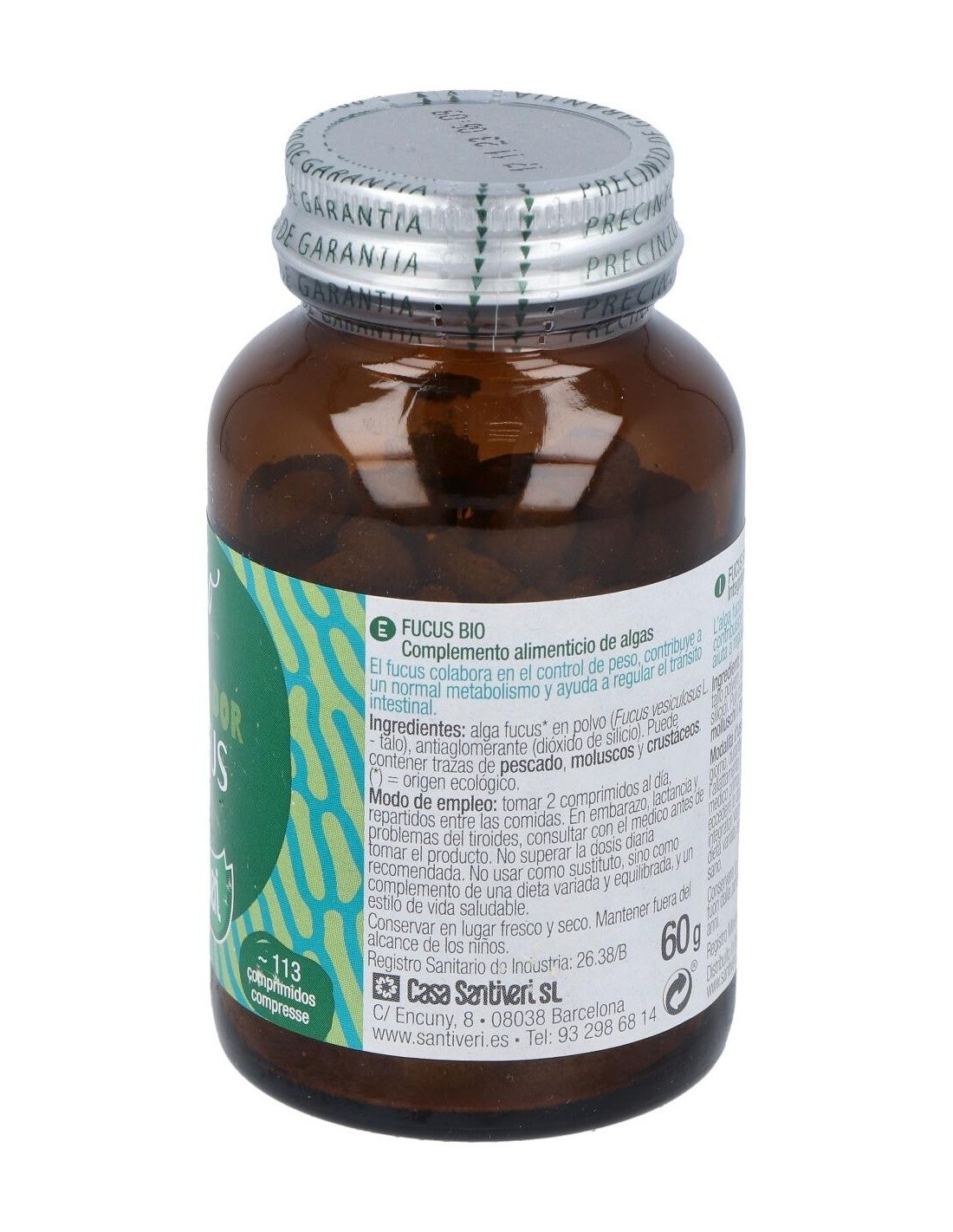 Complemento alimenticio rico en yodo y especialmente recomendado en dietas de adelgazamiento. Elaborado a partir de algas del Atlántico, las costas del Pacífico y el Mar del Norte. Ayuda a cuidar de la salud de la piel, estimula la tiroides, ayuda con la retención de líquidos, facilita la digestión, y contribuye a reducir el colesterol malo. Indicado en personas que se encuentren en un régimen o dieta de adelgazamiento. Puede contener trazas de pescado, crustáceos y moluscos.