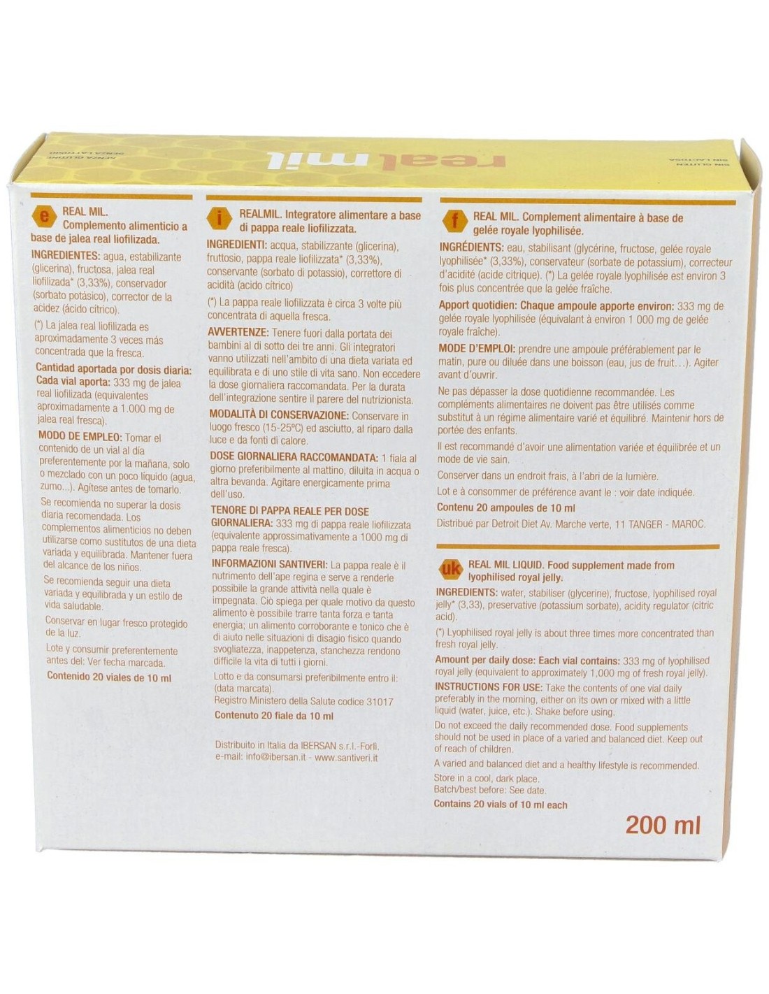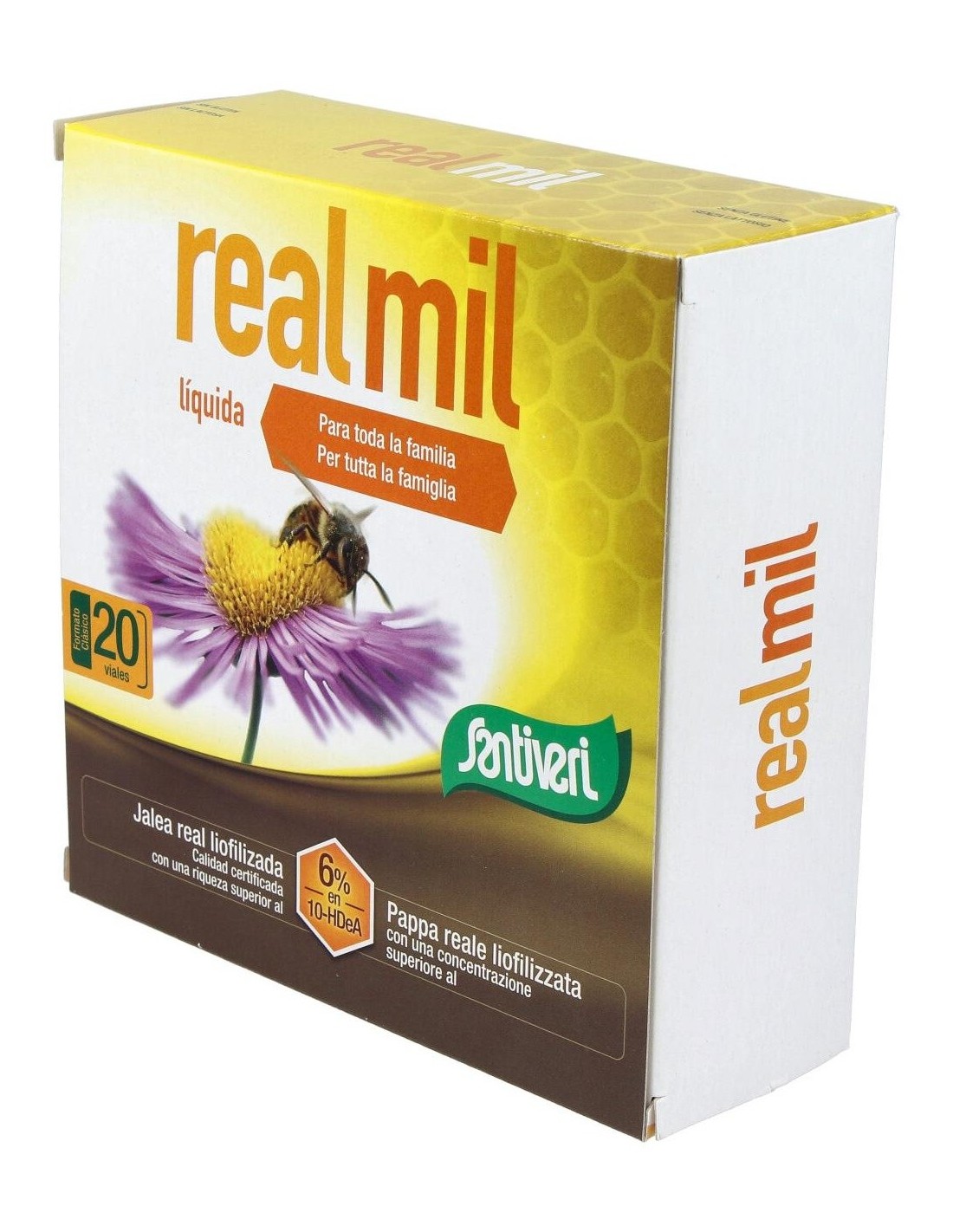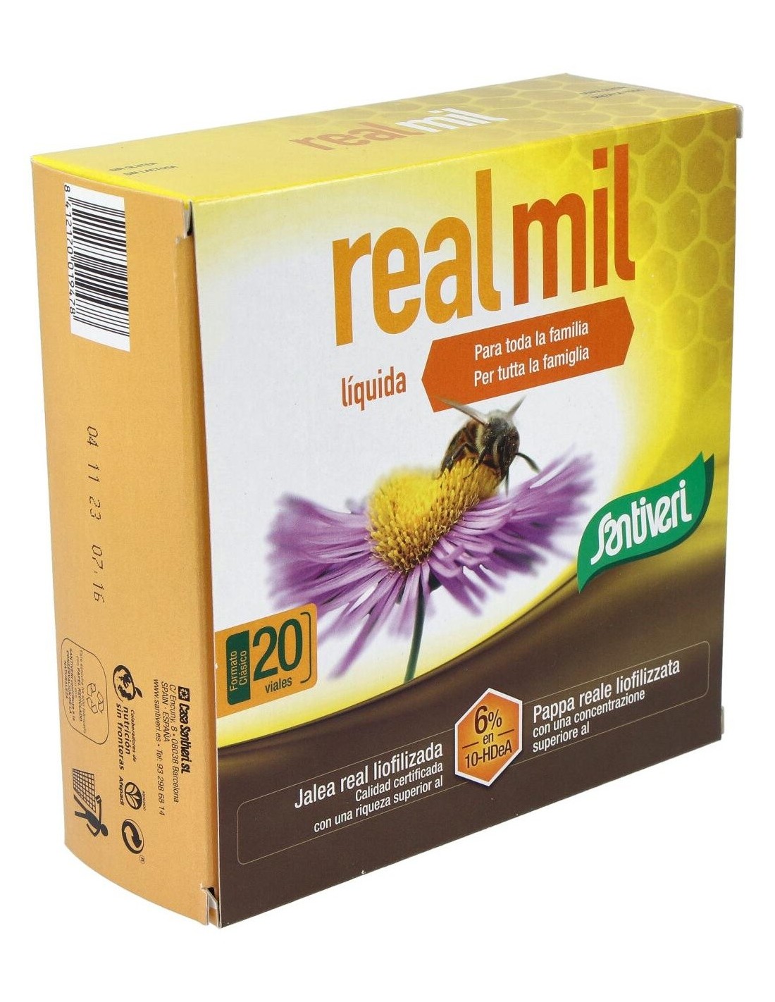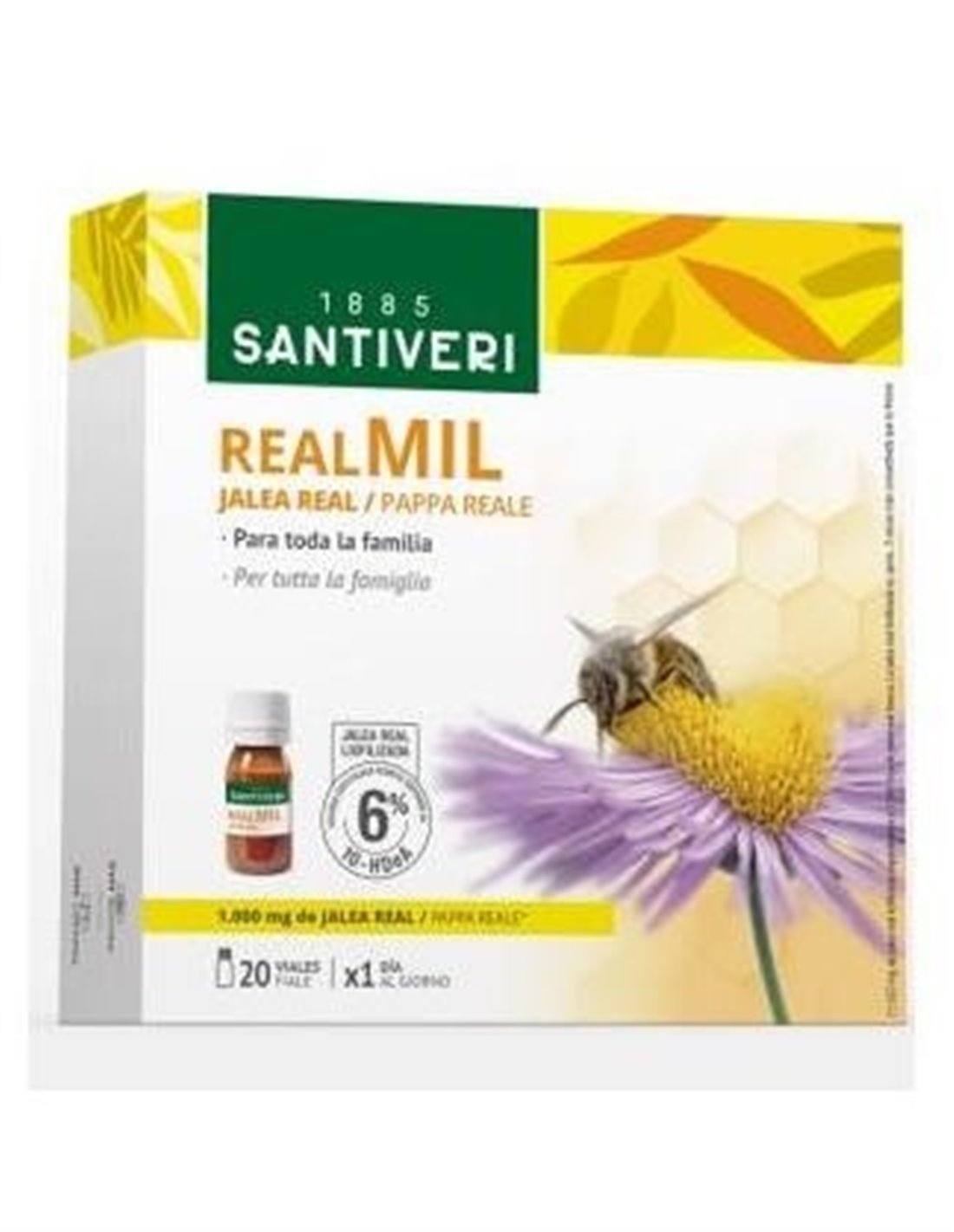 Santiveri real mil jalea real es un suplemento alimenticio pensado para reforzar el sistema inmunitario, y conseguir una mayor protección para las defensas. Impide que los agentes víricos consigan penetrar en el organismo, y lo dañen o perjudiquen.