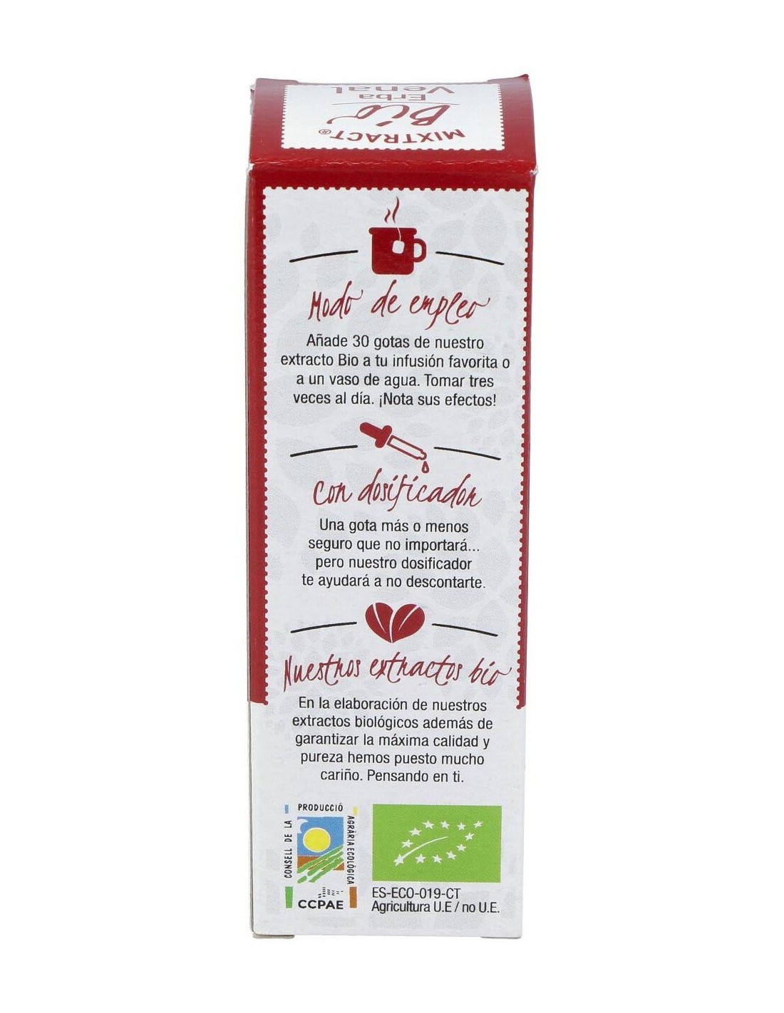 Añadir 30 gotas en un poco de agua o infusión, y tomar 3 veces al día.