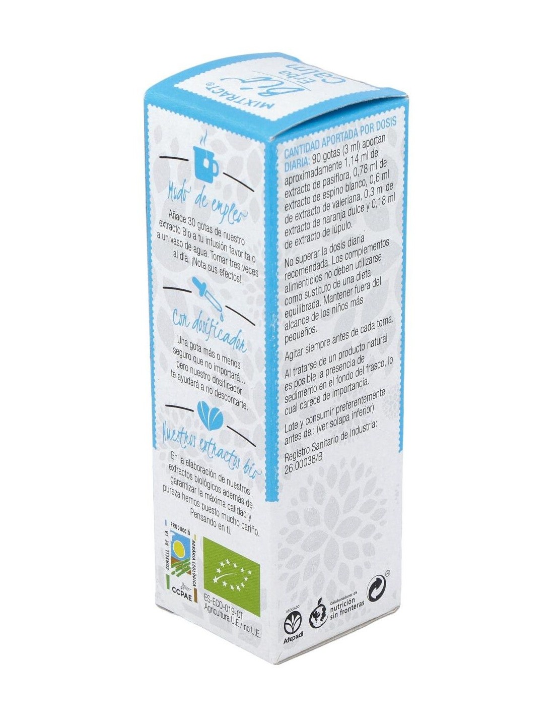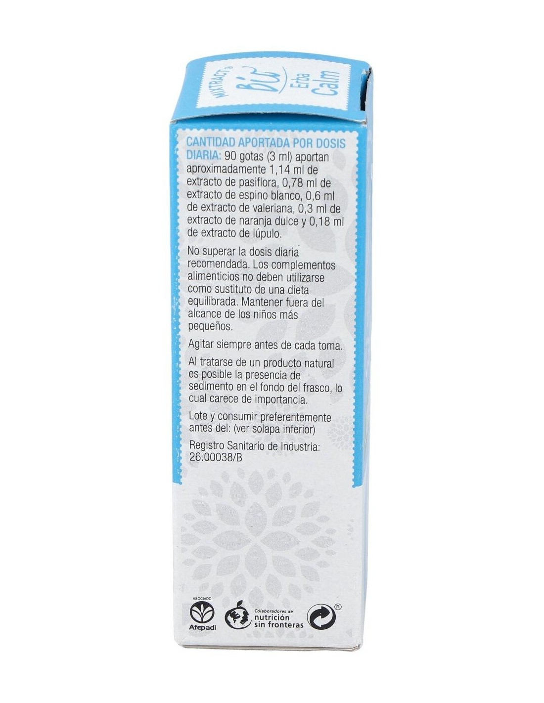 1,14 ml de extracto de pasiflora, 0,78 ml de extracto de espino blanco, 0,6 ml de extracto de valeriana, 0,3 ml de extracto de naranja dulce y 0,18 ml de extracto de lúpulo.