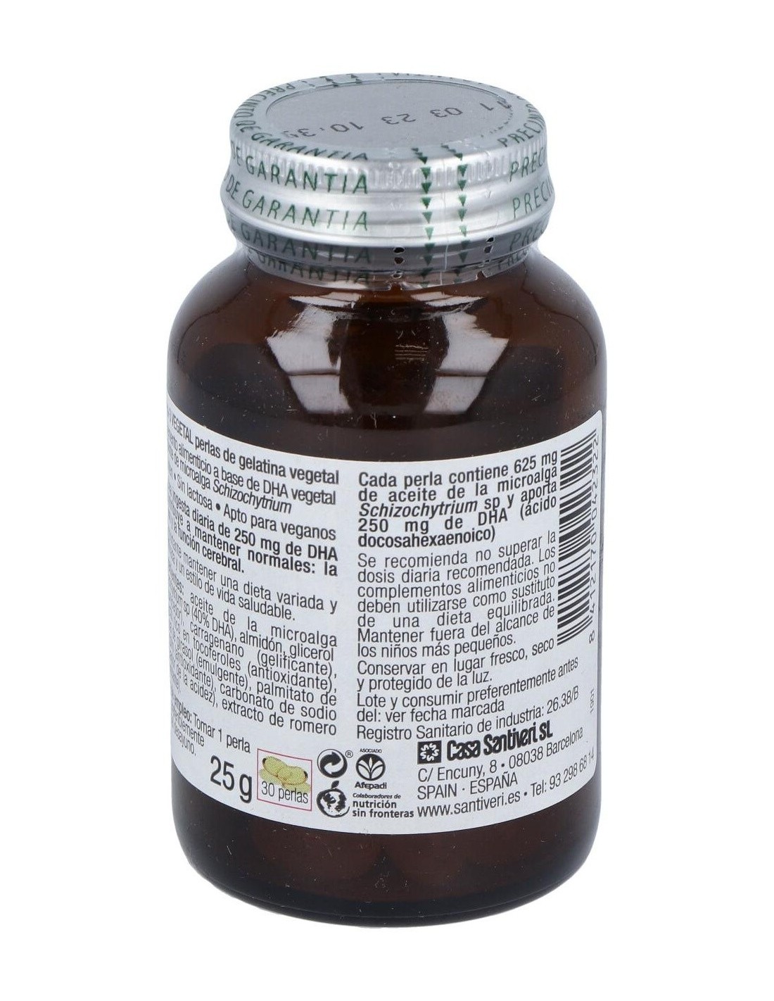 625 mg de aceite de la microalga Schizochytrium sp y aporta 250 mg de DHA (ácido docosahexaenoico)