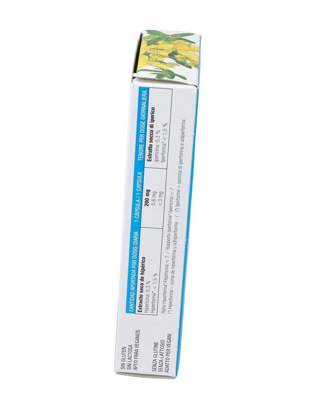 Complemento alimenticio a base de extracto de hipérico: contribuye a la relajación y al equilibrio emocional y ayuda a mantener un estado de ánimo positivo. Apto para veganos.