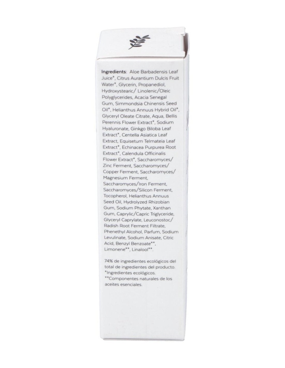 ALOE BARBADENSIS LEAF JUICE*, CITRUS AURANTIUM DULCIS FRUIT EXTRACT*, GLYCERIN, PROPANEDIOL, HYDROXYSTEARIC/LINOLENIC/OLEIC POLYGLYCERIDES, ACACIA SENEGAL GUM, SIMMONDSIA CHINENSIS SEED OIL*, AQUA, GLYCERYL OLEATE CITRATE, DEHYDROXANTHAN GUM, BELLIS PERENNIS FLOWER EXTRACT*, SODIUM HYALURONATE, GINKGO BILOBA LEAF EXTRACT*, CENTELLA ASIATICA LEAF EXTRACT, EQUISETUM ARVENSIS LEAF EXTRACT*, EQUINACEA PURPUREA ROOT EXTRACT*, CALENDULA OFFICINALIS FLOWER EXTRACT*, SACCHAROMYCES/ZINC FERMENT, SACCHAROMYCES/COPPER FERMENT, SACCHAROMYCES/MAGNESIUM FERMENT, SACCHAROMYCES/IRON FERMENT, SACCHAROMYCES/SILICON FERMENT, HYDROLYZED RHIZOBIAN GUM, SODIUM PHYTATE, CAPRYLIC/CAPRIC TRIGLYCERIDE, GLYCERYL CAPRYLATE, PARFUM, SODIUM LEVULINATE, CITRIC ACID.