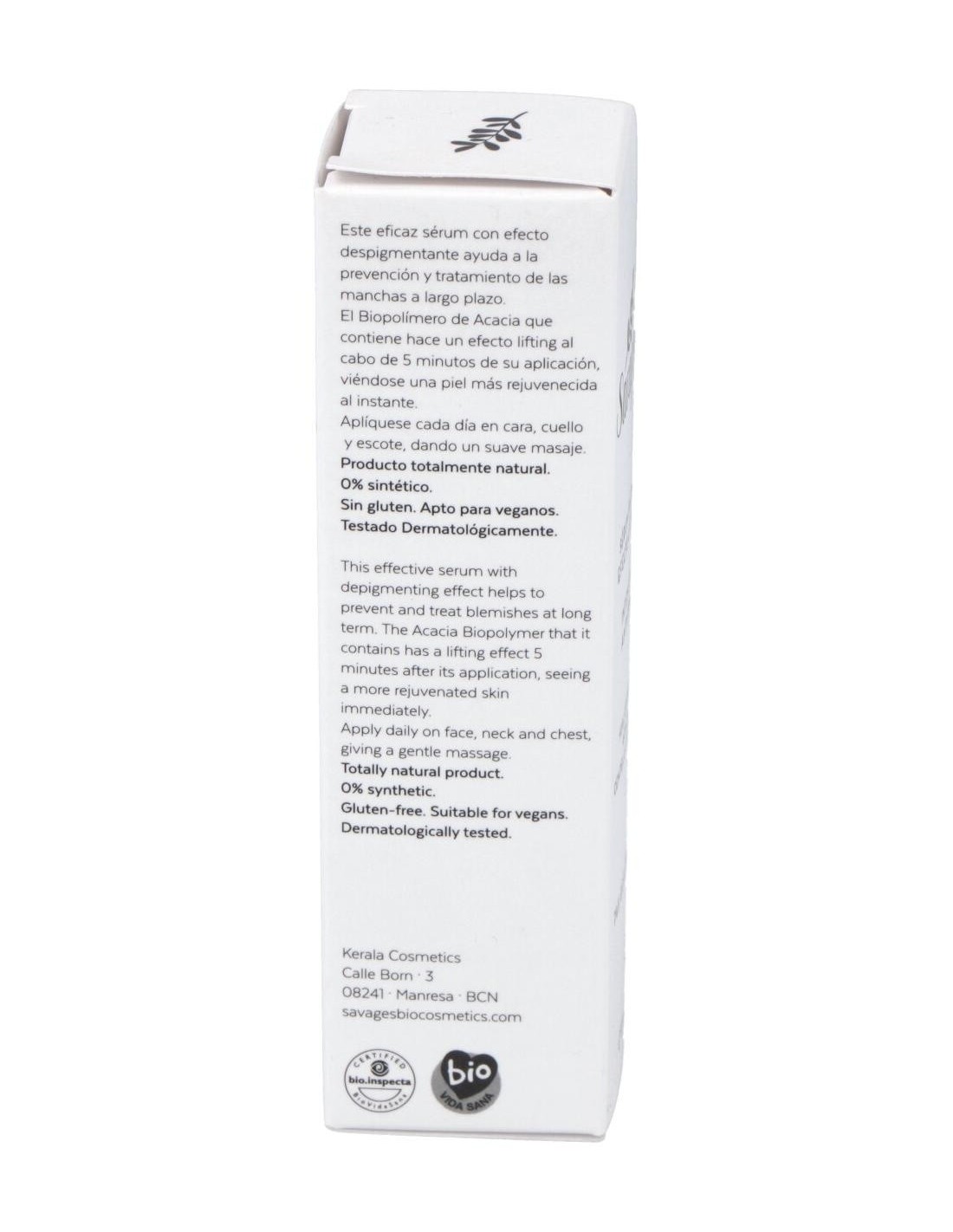 Es un sérum con efecto despigmentante ayuda a la prevención y tratamiento de las manchas a largo plazo, gracias a activos como el Extracto de Margarita, el Agua Celular de Mandarina y el Ácido Fítico.