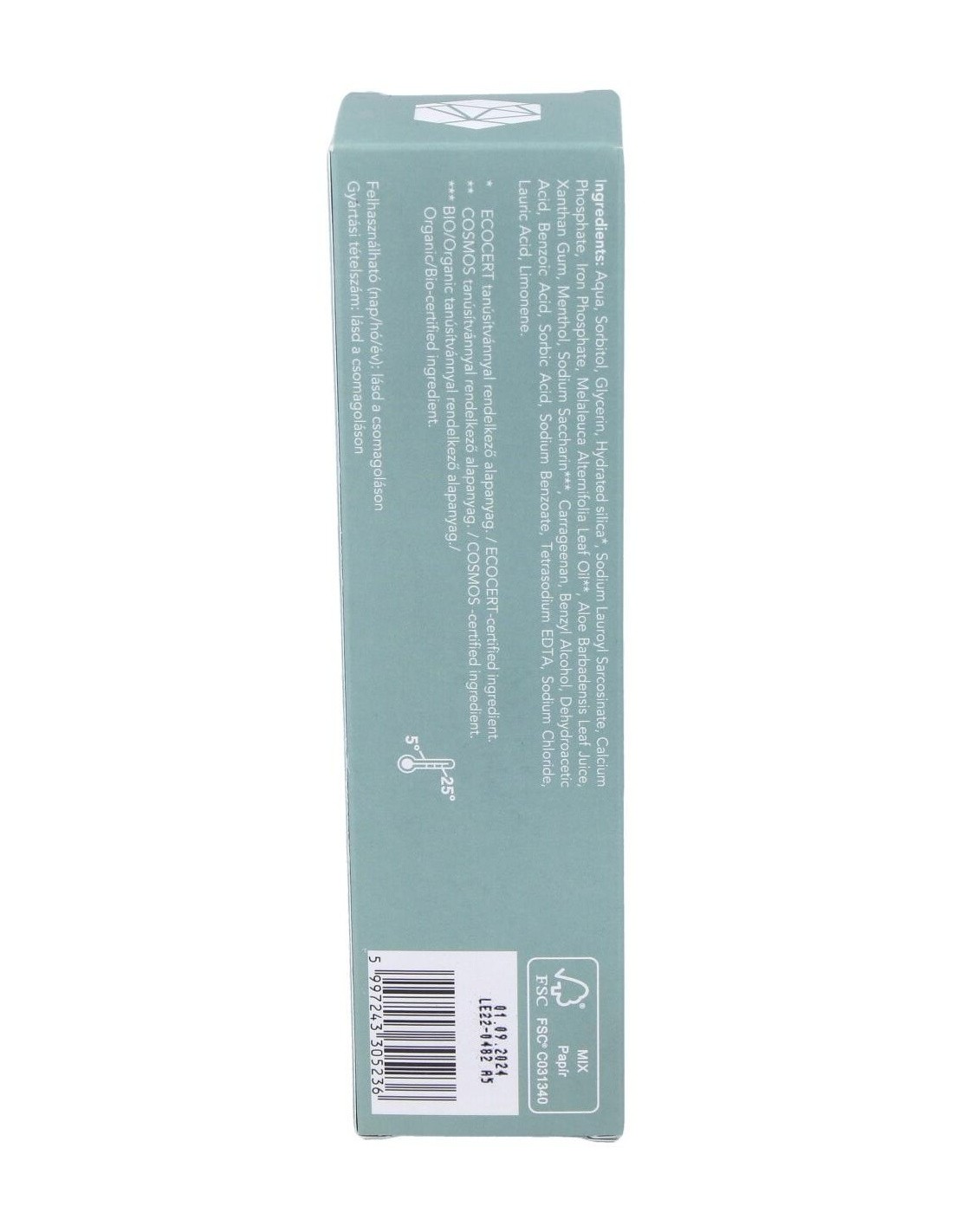 Ejerce un potente efecto sobre dientes y encías sensibles, además de dejar un agradable frescor mentolado. Se trata de una pasta natural ECOCERT, apta para veganos y cruelty free.