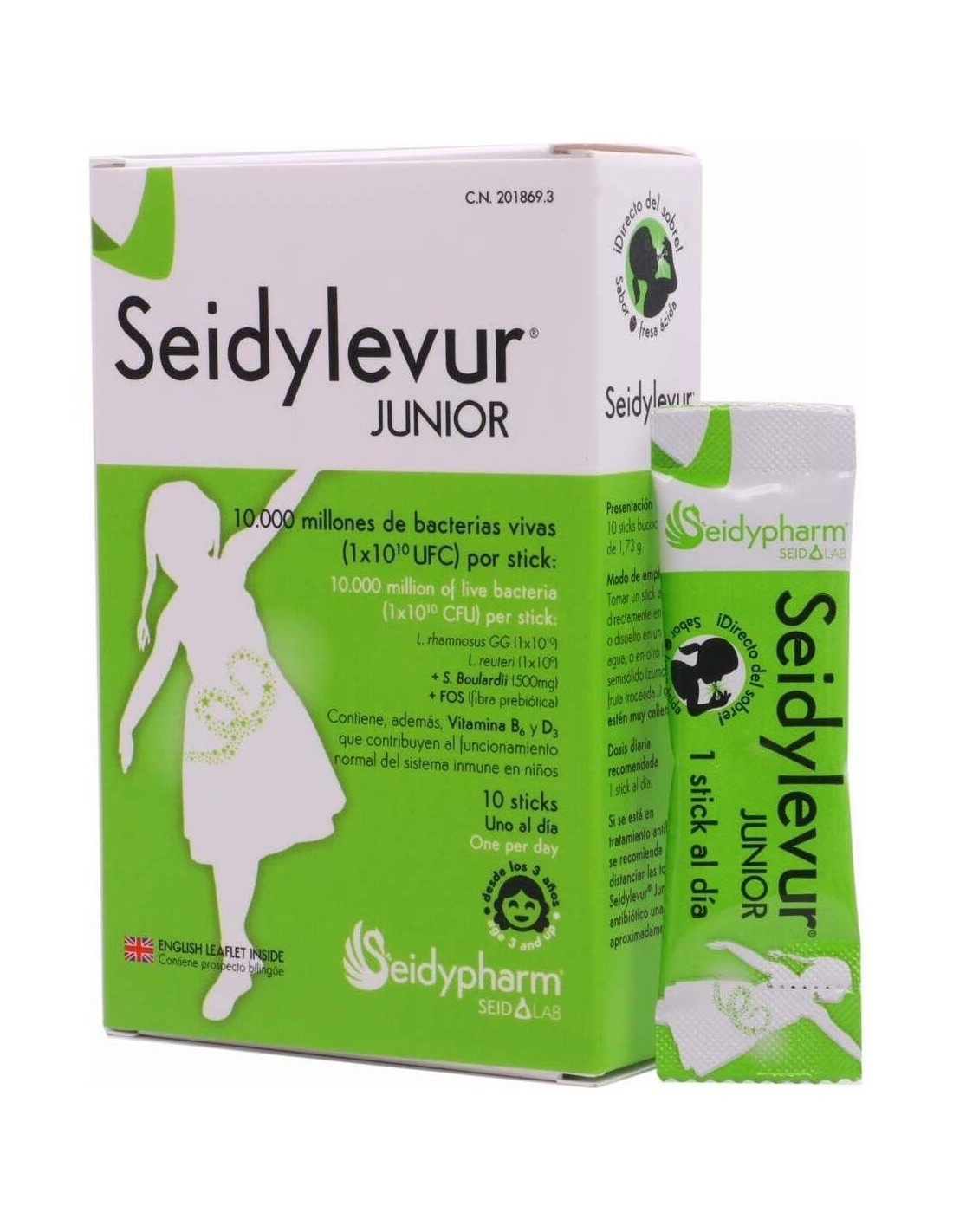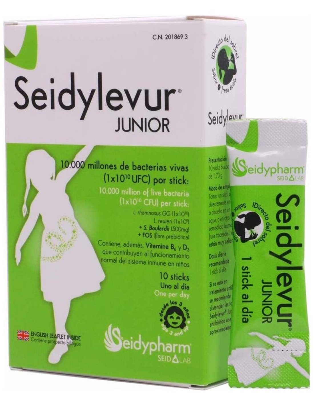 SEIDSimbiótico (mezcla de una selección específica de microorganismos vivos y prebióticos), enriquecido con Zinc y Vitamina B6 que contribuye al funcionamiento normal del sistema inmune. Fórmula probiótica basada en las recomendaciones de la Organización Mundial de Gastroenterología (WGO) para la prevención y tratamiento de la diarrea, asociada o no a la toma de antibióticos. Formato de sticks bucodispensables.