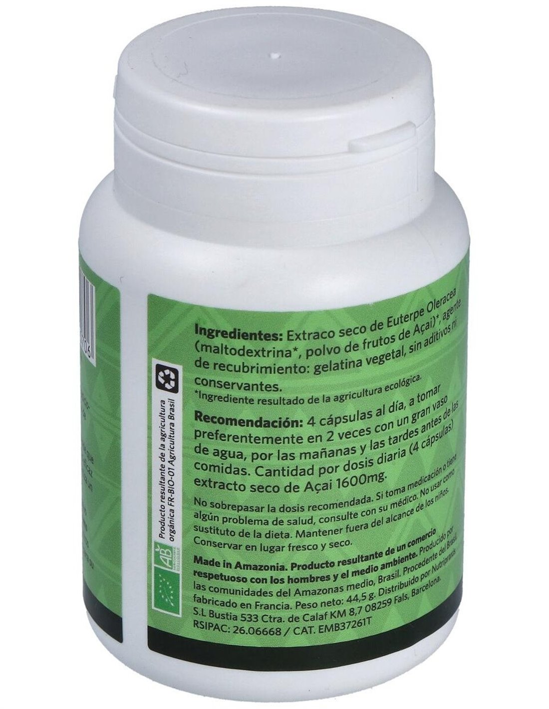 Complemento alimenticio compuesto de extracto puro de Açai, 100% orgánico procedente de cultivos salvajes, utilizado comúnmente por sus propiedades antioxidantes y beneficiosas para el sistema cardiovascular. Fruta utilizada por los indígenas por sus propiedades antienvejecimiento, como gran tónico y energético del organismo. Además, ayuda a mejorar estados de la salud cardiovascular y osteoarticular.