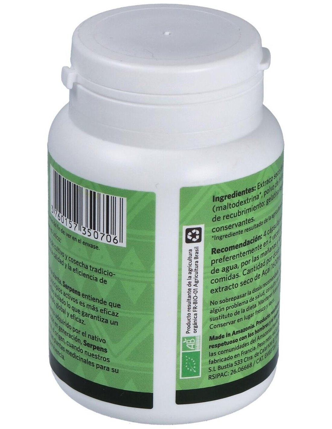 Complemento alimenticio compuesto de extracto puro de Açai, 100% orgánico procedente de cultivos salvajes, utilizado comúnmente por sus propiedades antioxidantes y beneficiosas para el sistema cardiovascular. Fruta utilizada por los indígenas por sus propiedades antienvejecimiento, como gran tónico y energético del organismo.