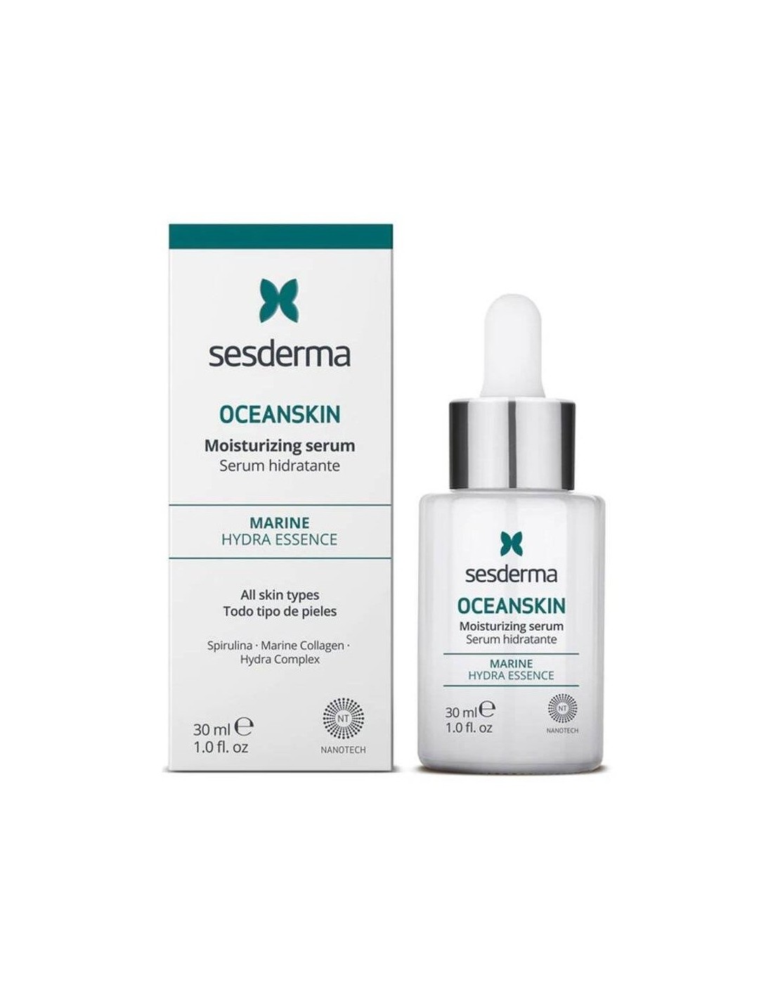 Sesderma Oceanskin Serum Hidratante 30 mles un sérum hidratante indicado para cuidar las pieles secas o reactivas, así como para contrarrestar los efectos del envejecimiento de la piel. Contiene activos marinos para una hidratación de la piel, como la espirulina, el colágeno marino, las algas marinas y el extracto de caviar, así como el exclusivo Ses Hydra Complex, compuesto por mantecas y aceites naturales.