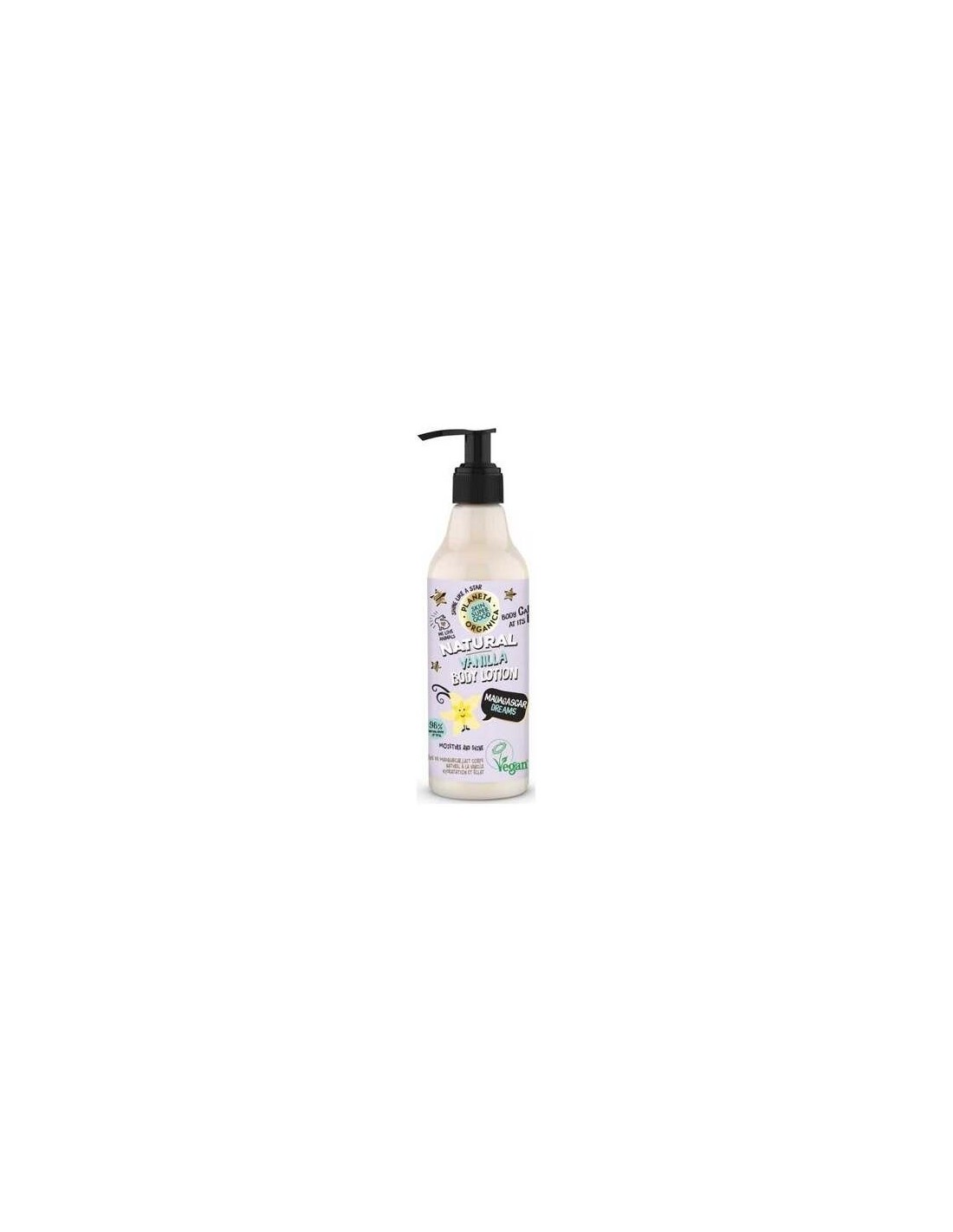 Planeta Orgánica Vanilla Body Lotion Madagascar Dreams 250ml es una loción corporal hidratante elaborada a base de aceite natural de coco. Además, contiene aceite de nuez de macadamia, extracto de papaya, semillas de cacao y extracto de vainilla de Madagascar, para una piel más suave y elástica.