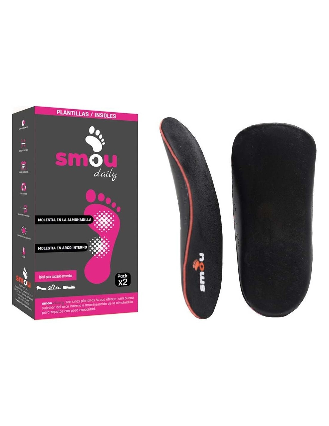 Plantilla corta con descarga metatarsal y soporte del arco interno. Ideal para calzado con poca capacidad o estrecho como zapatos de fiesta o calzado de verano.