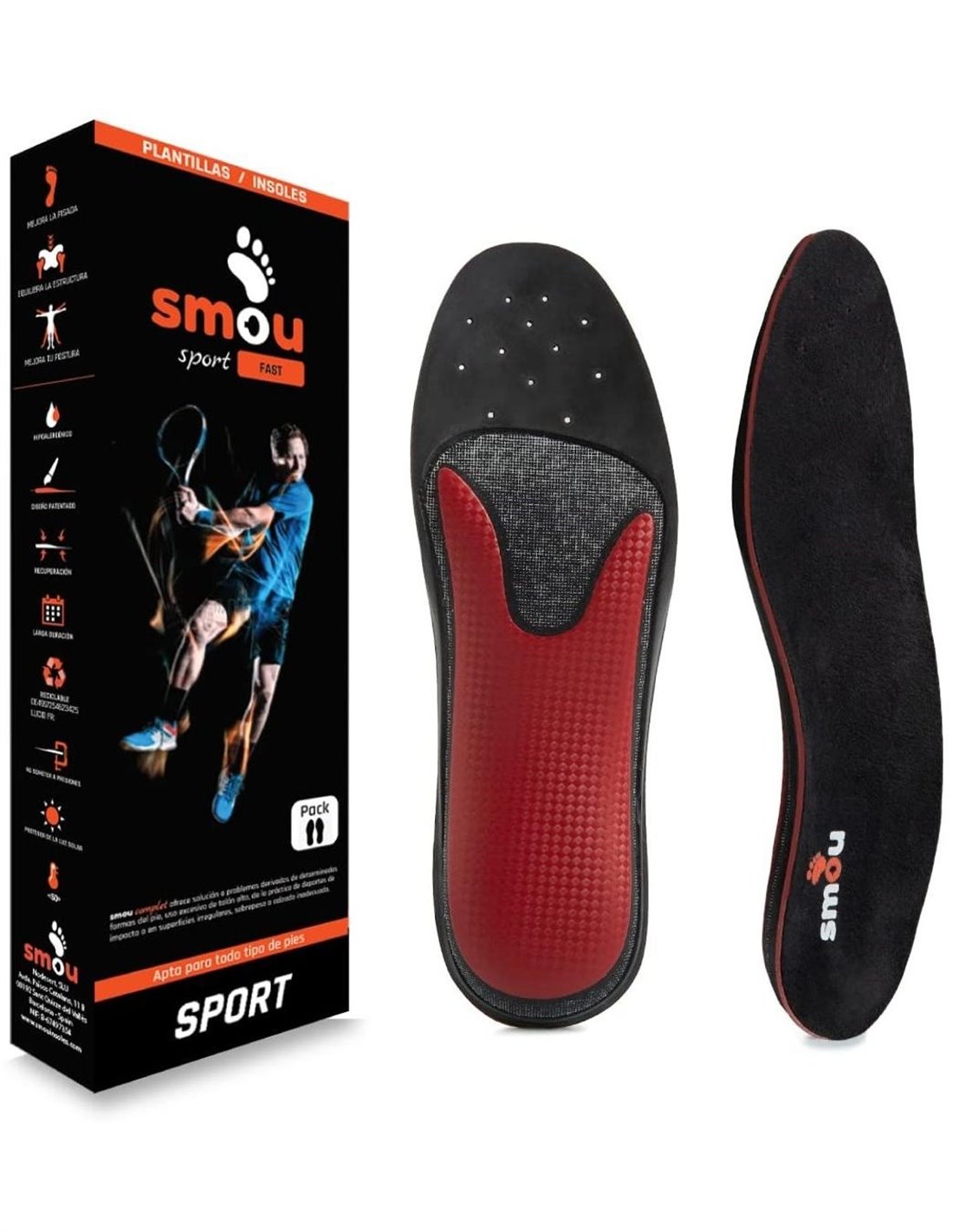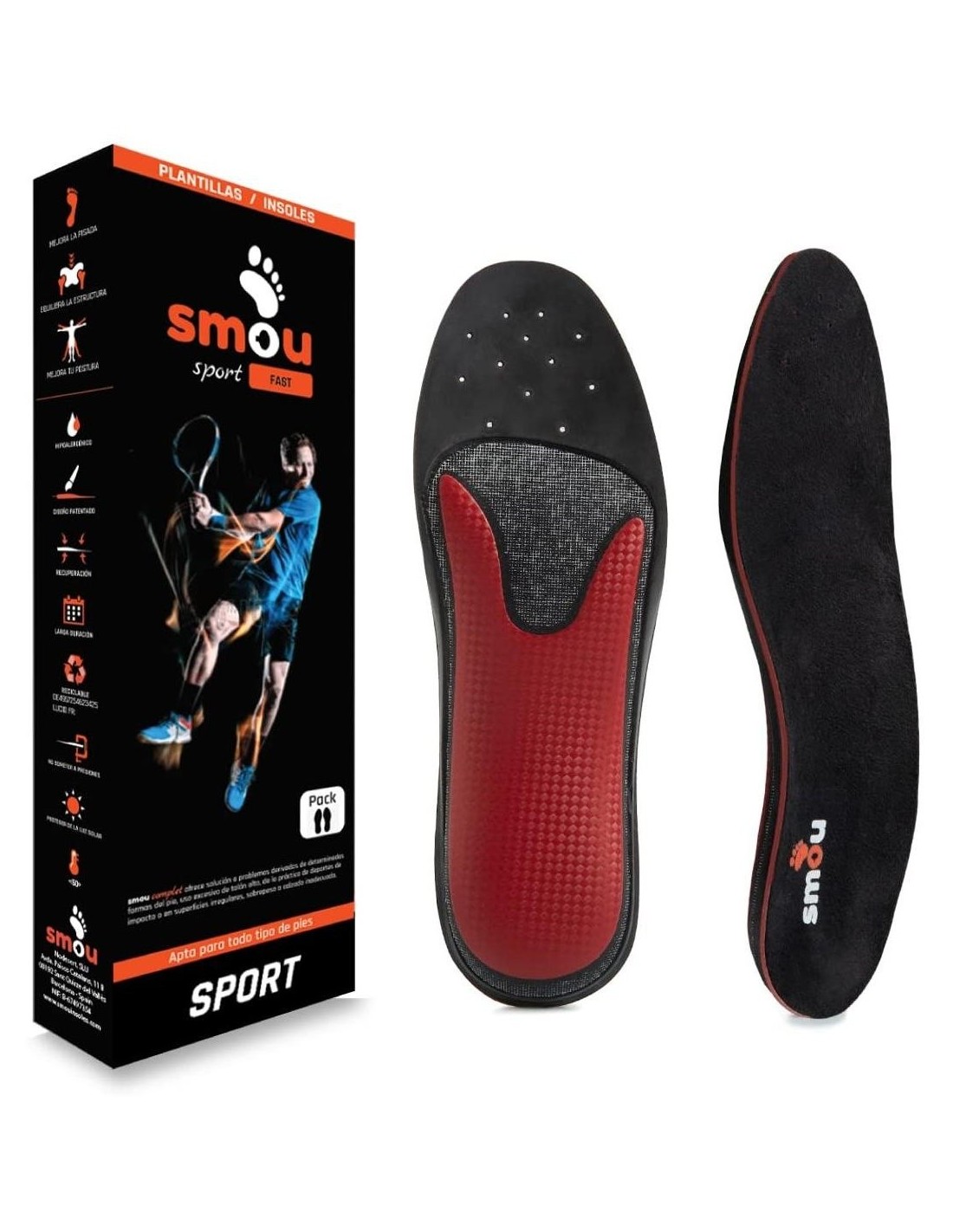 Plantillas que buscan un efecto 'rebote' o de impulso para realizar giros cortos y cambios de sentido rápidos. Para zapatillas deportivas de hombre y mujer. Sin descarga metatarsal.