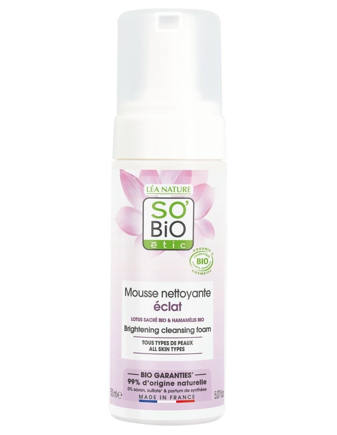 SO´BIO ETICEspuma limpiadora iluminadora piel perfecta. Desmaquilla y limpia suavemente. Desde la primera aplicación los poros se cierran y la tez luce más radiante. Ideal para una piel cansada y estresada. Botella de origen vegetal. Testada bajo control dermatológico.