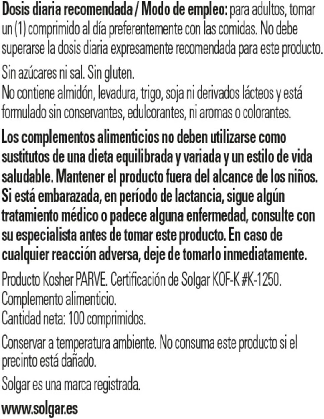 Folacín. Ácido Fólico 400 µg 100 comprimidos Solgar
