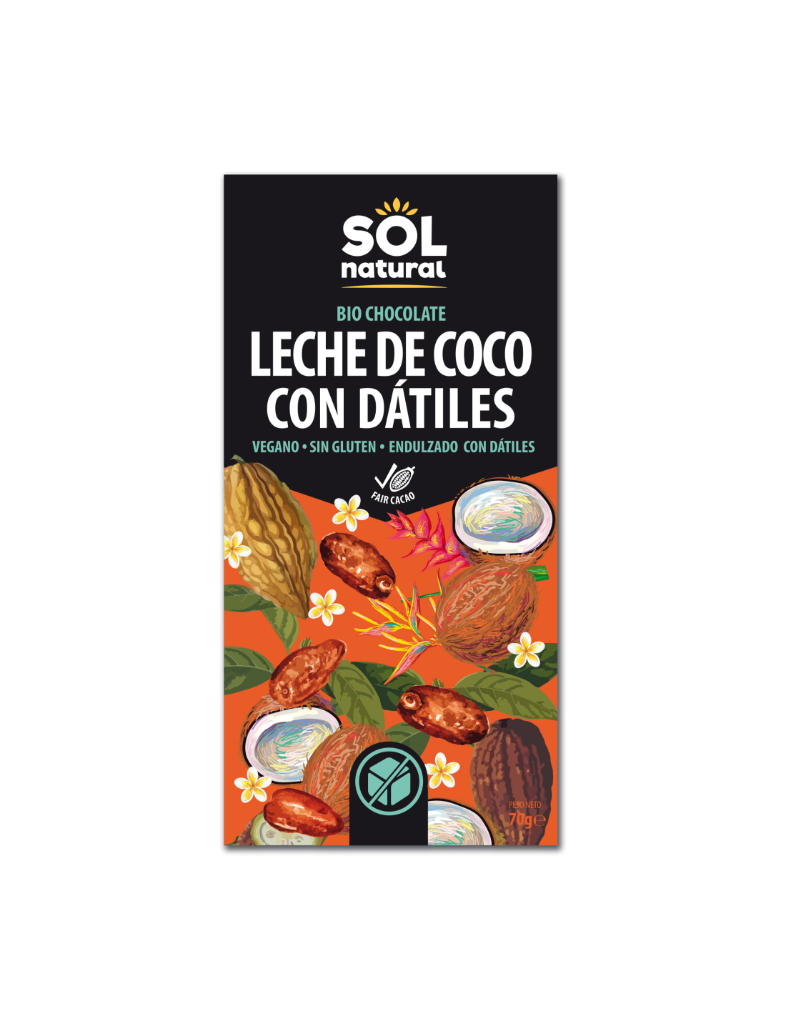 Tableta Chocolate Con Leche De Coco Y Dátiles Bio 70 g de Solnatural