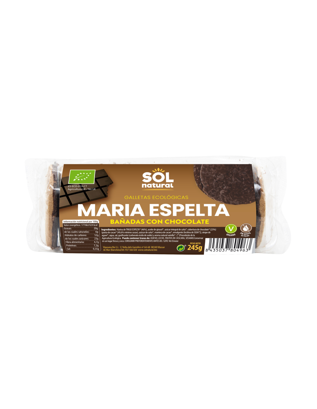 Pack 12 Uds. Marías Espelta Bañadas Con Chocolate Bio 245 g de Solnatural