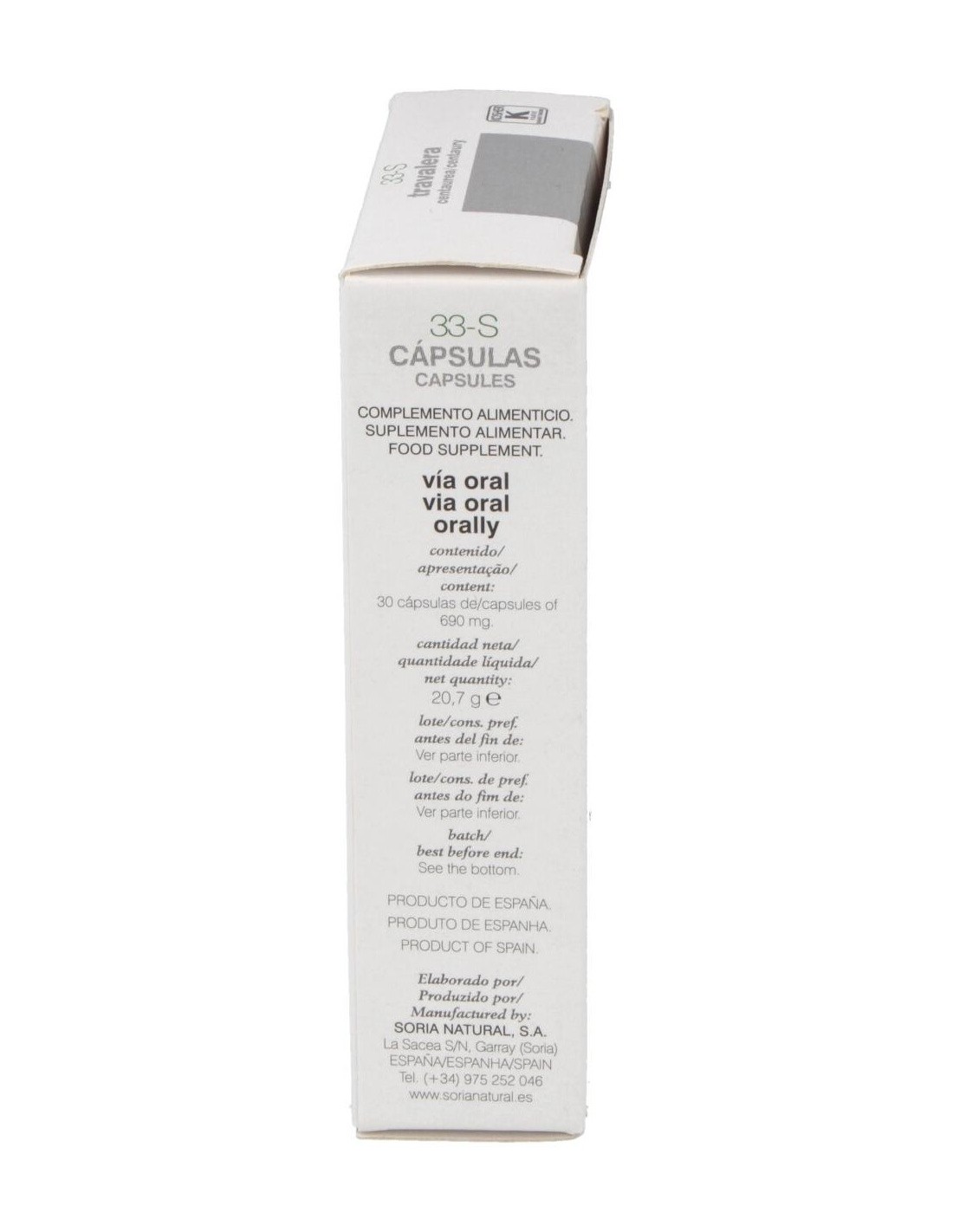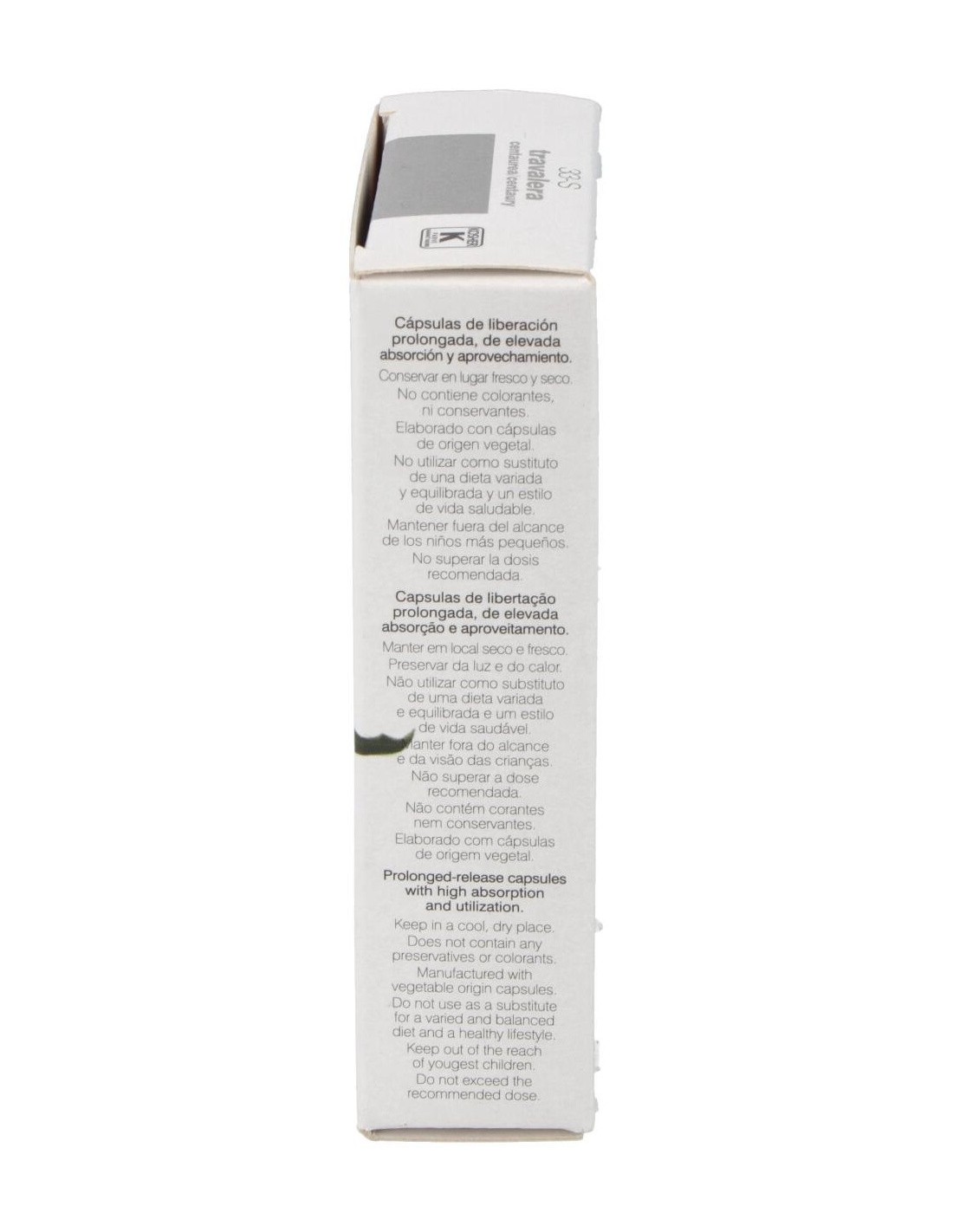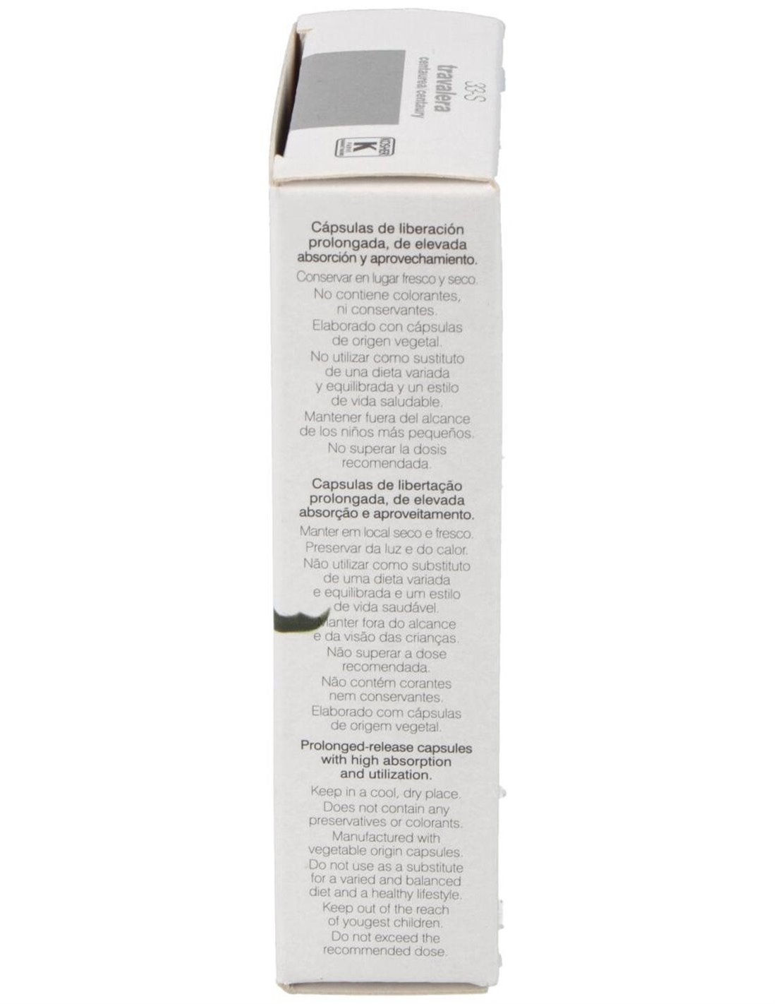 Envase de 30 cápsulas. Los complementos alimenticios no deben utilizarse como sustitutos de una dieta variada y equilibrada. No superar la dosis diaria expresamente recomendada. Mantener fuera del alcance de los niños más pequeños.
