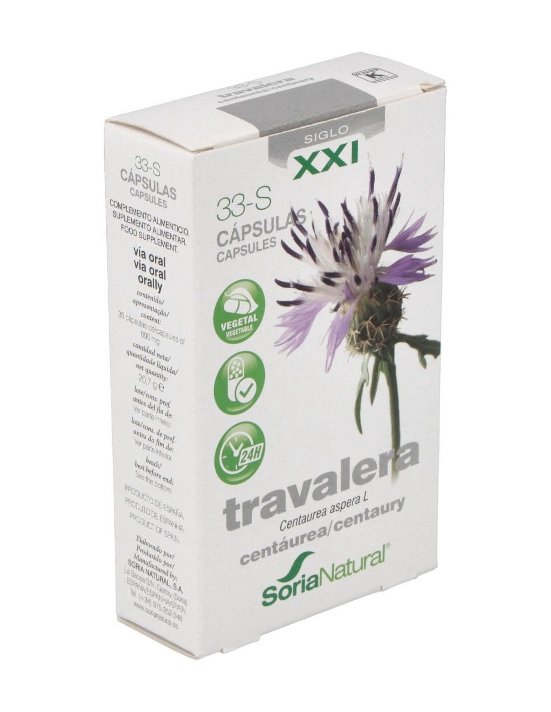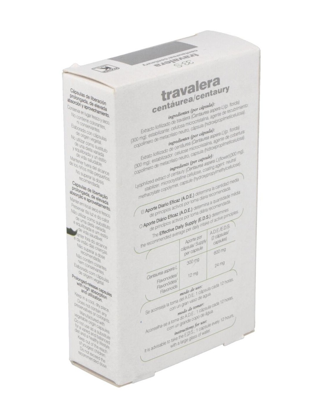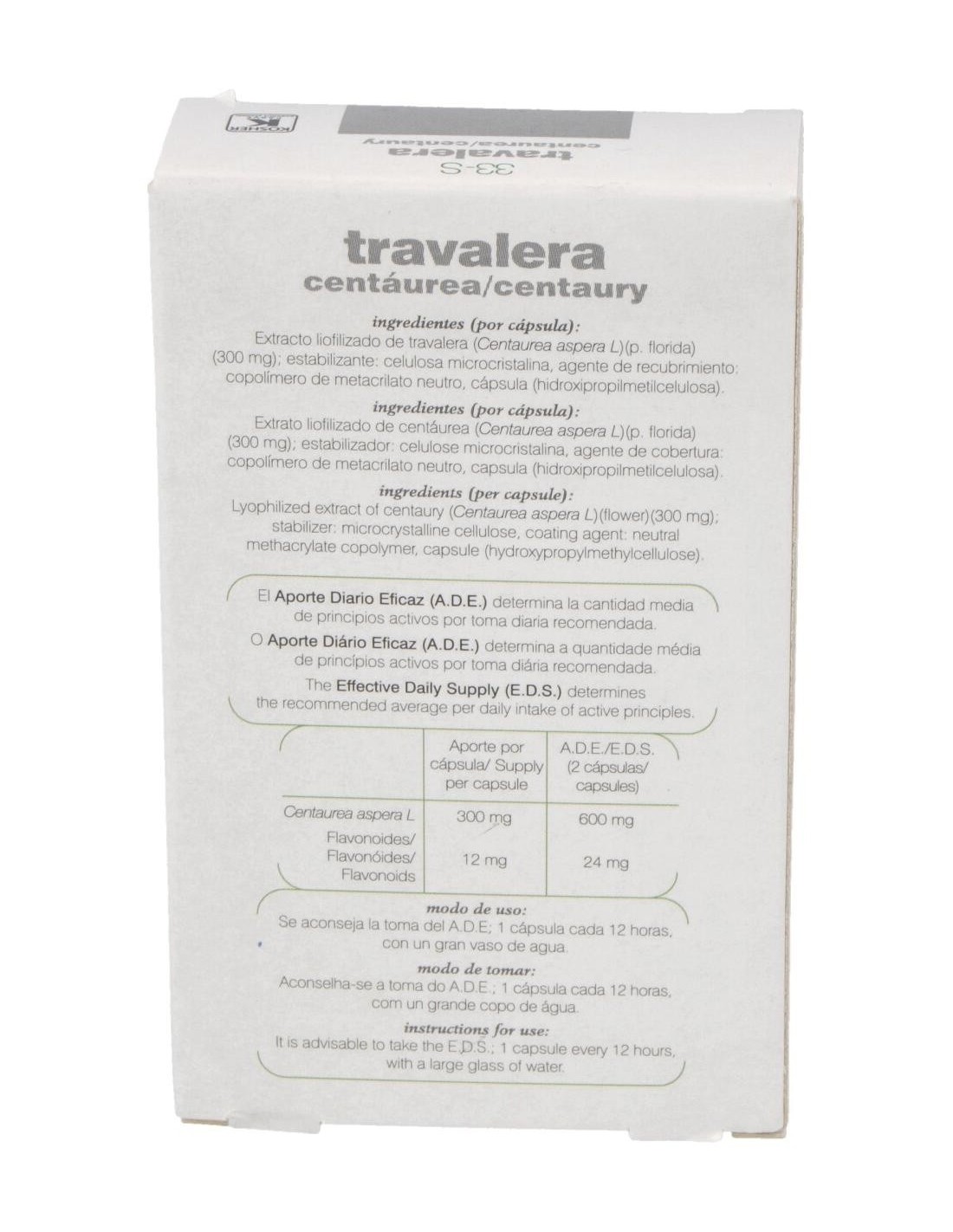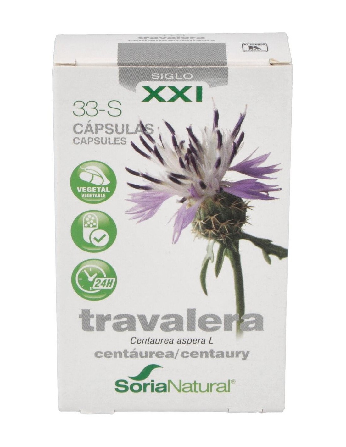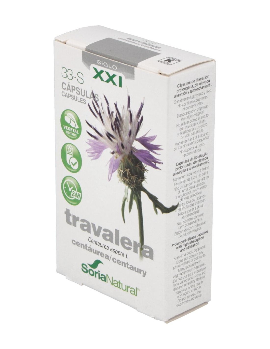 Complemento alimenticio que ayuda a regular los niveles de glucosa en sangre. La travalera (Centaurea aspera L.) es popularmente conocida como la insulina vegetal y se la utiliza en la medicina natural como hipoglucemiante por su capacidad de reducir los niveles de azúcar en la sangre y la orina de las personas con diabetes. También se la utiliza como complemento en los tratamientos contra la anorexia, en dispepsia hiposecretora y en la disquinesia hepatobiliar.