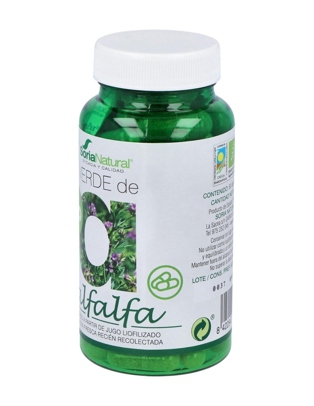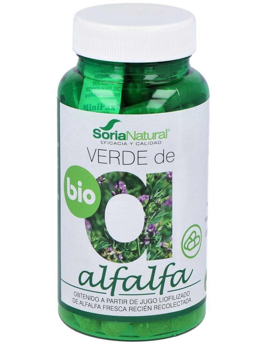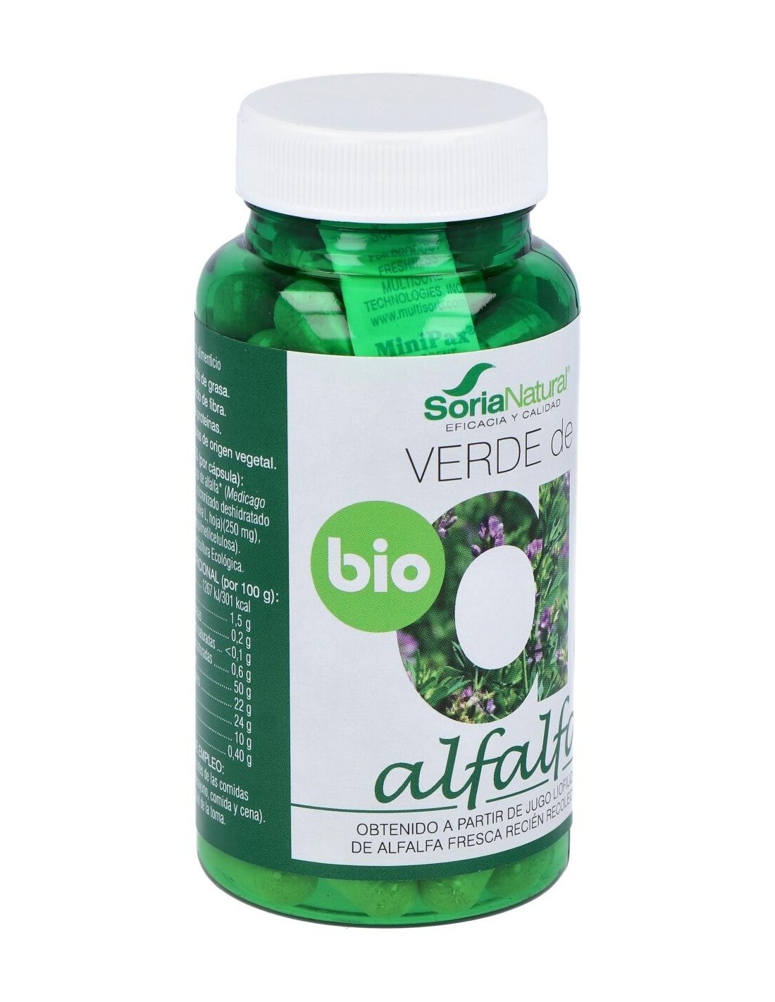 Complemento alimentico de Alfalfa BIO. Propiedades de la alfalfa: La alfalfa es una planta alcalinizante muy útil al organismo para neutralizar la sobrecarga de toxemia ácida y ayudar a restablecer el equilibrio interno, necesario para la salud. Rica en clorofila, ayuda a la regeneración de la sangre, contribuyendo al buen funcionamiento del organismo en general.