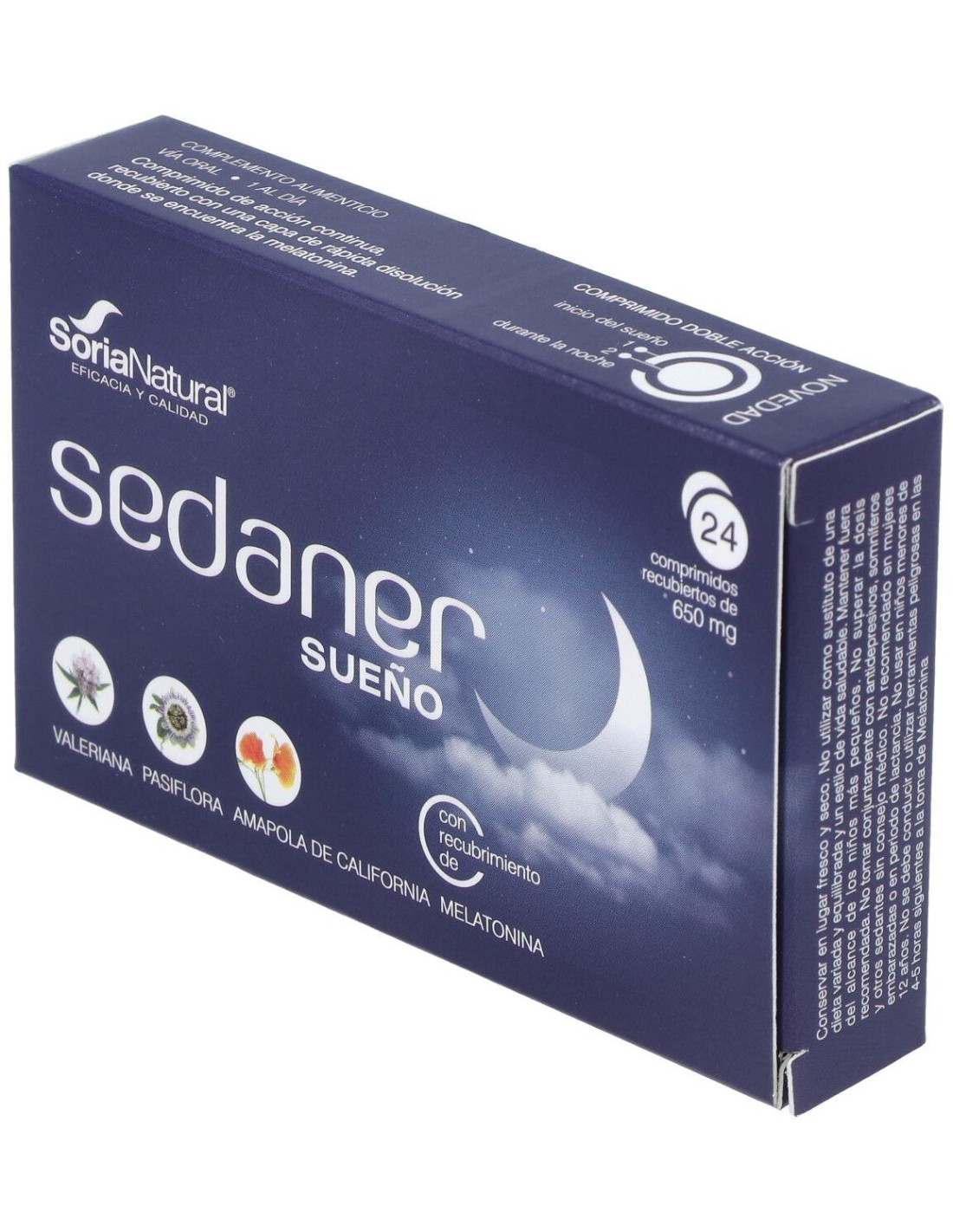 Comprimido de acción continua (inicio del sueño y durante la noche), recubierto con una capa de rápida disolución donde se encuentra la melatonina.