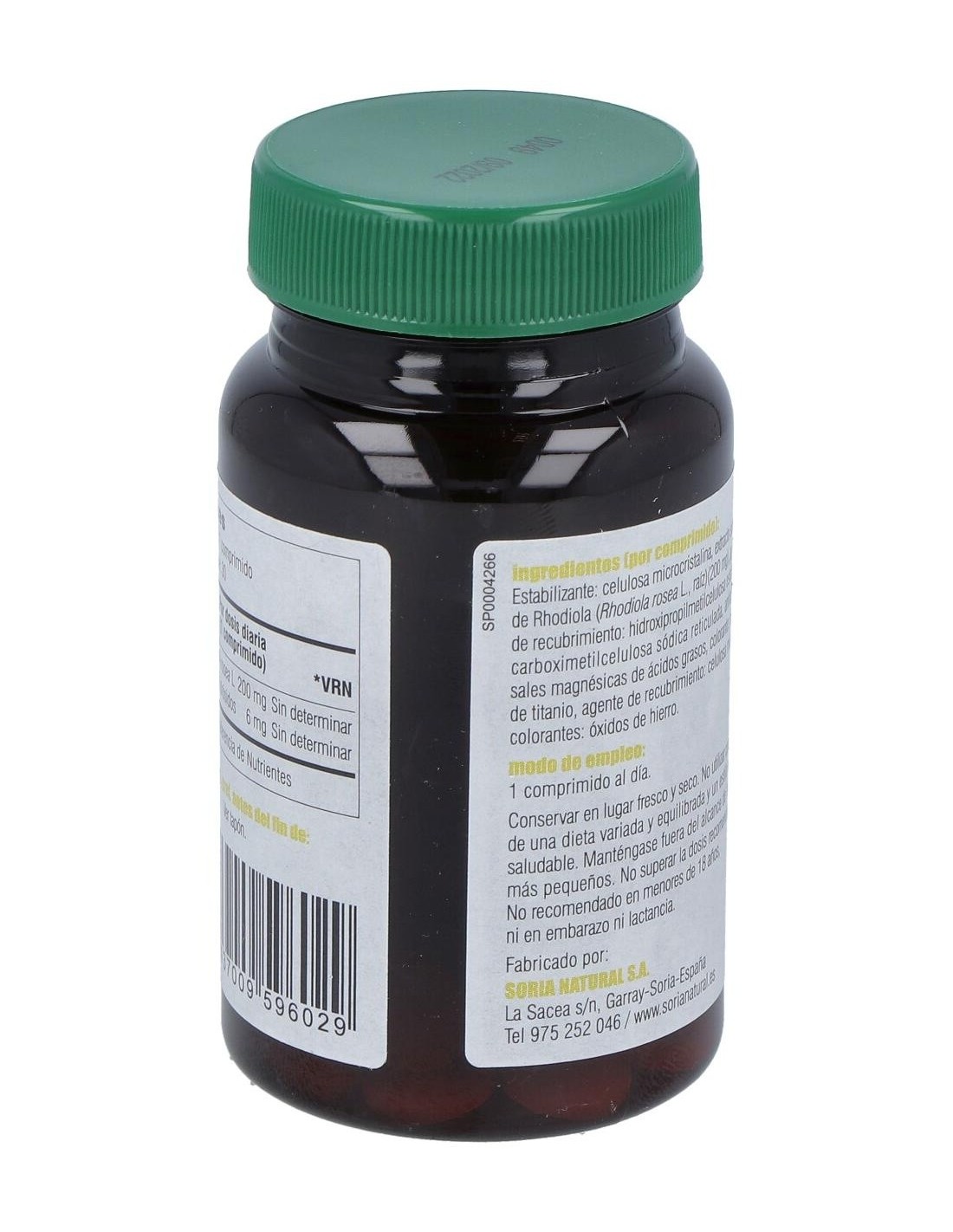 Extracto de Rhodiola (= 2,5 en Salidrósidos), Celulosa, Croscarmelosa sódica, Ácido esteárico, Estearato de magnesio, Sílice.