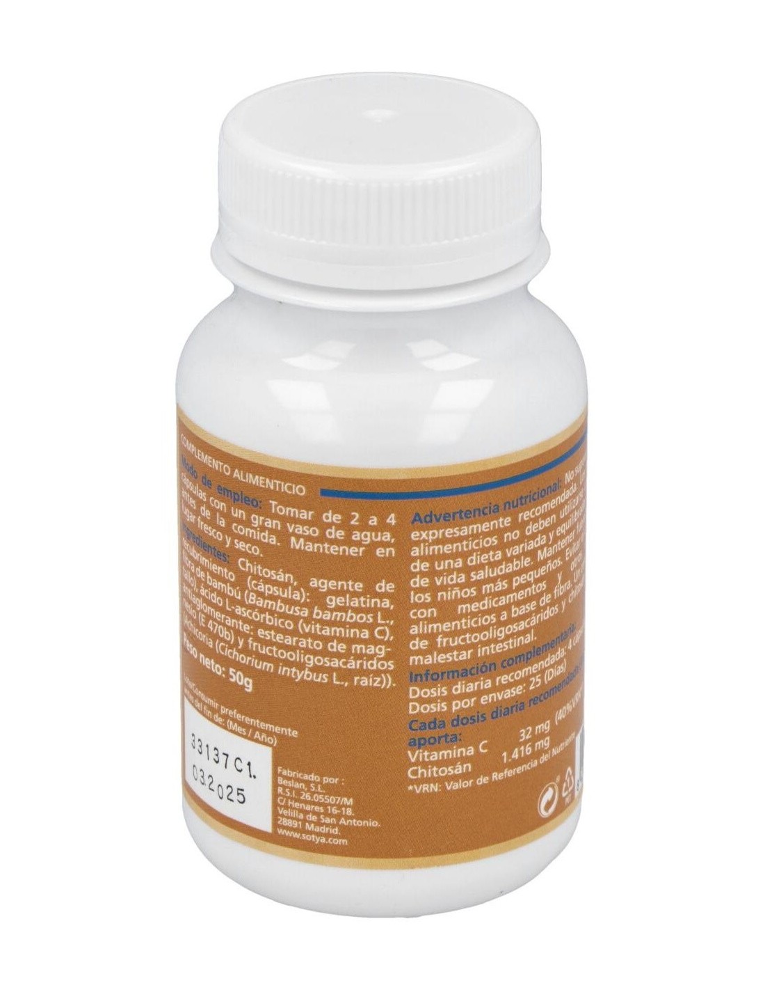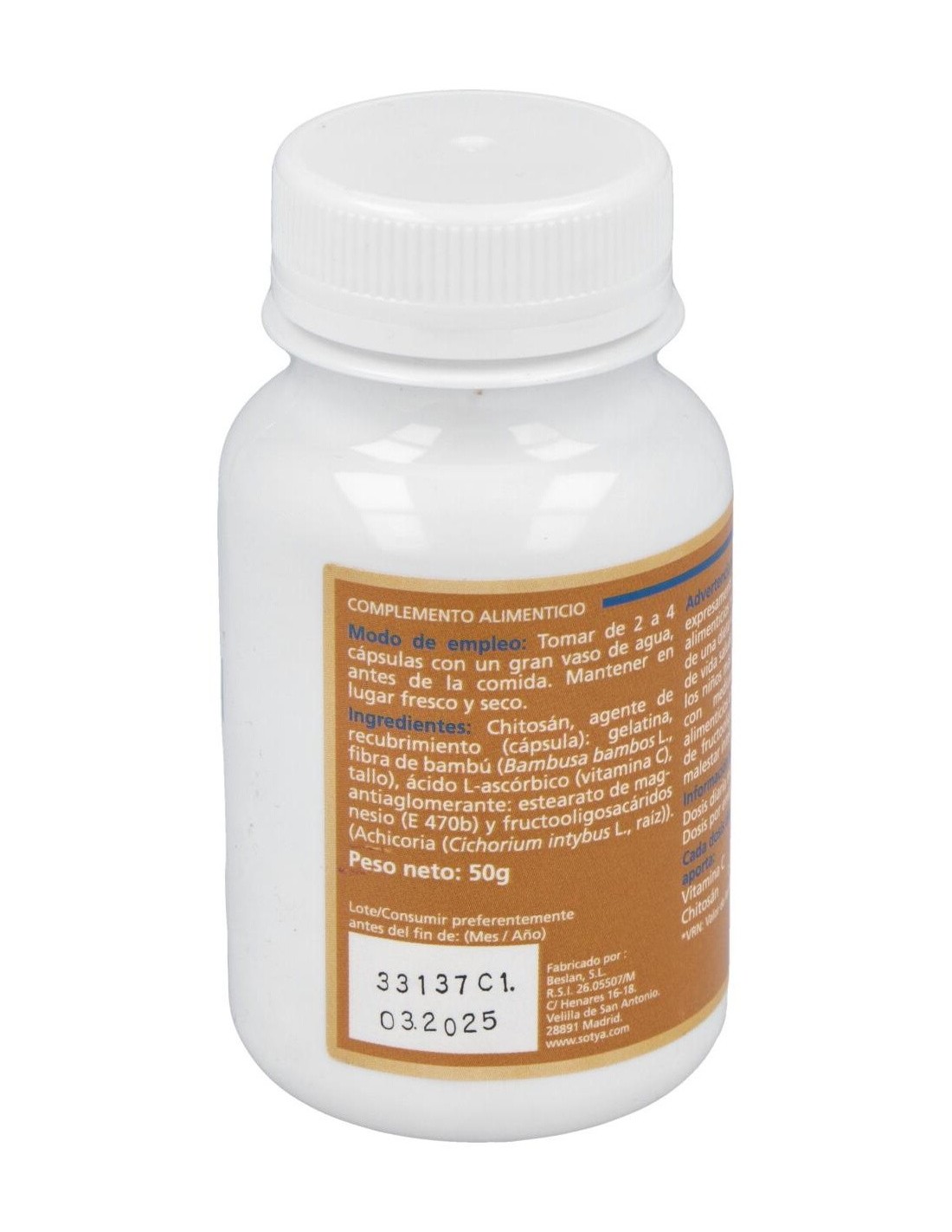 Sotya Chitosán 500mg son unas cápsulas que te aportarán todos los beneficios del chitosán de forma fácil y cómoda de ingerir. El chitosán te ayudará a absorber gran parte de la grasa presente en el estómago y que procede de la comida.