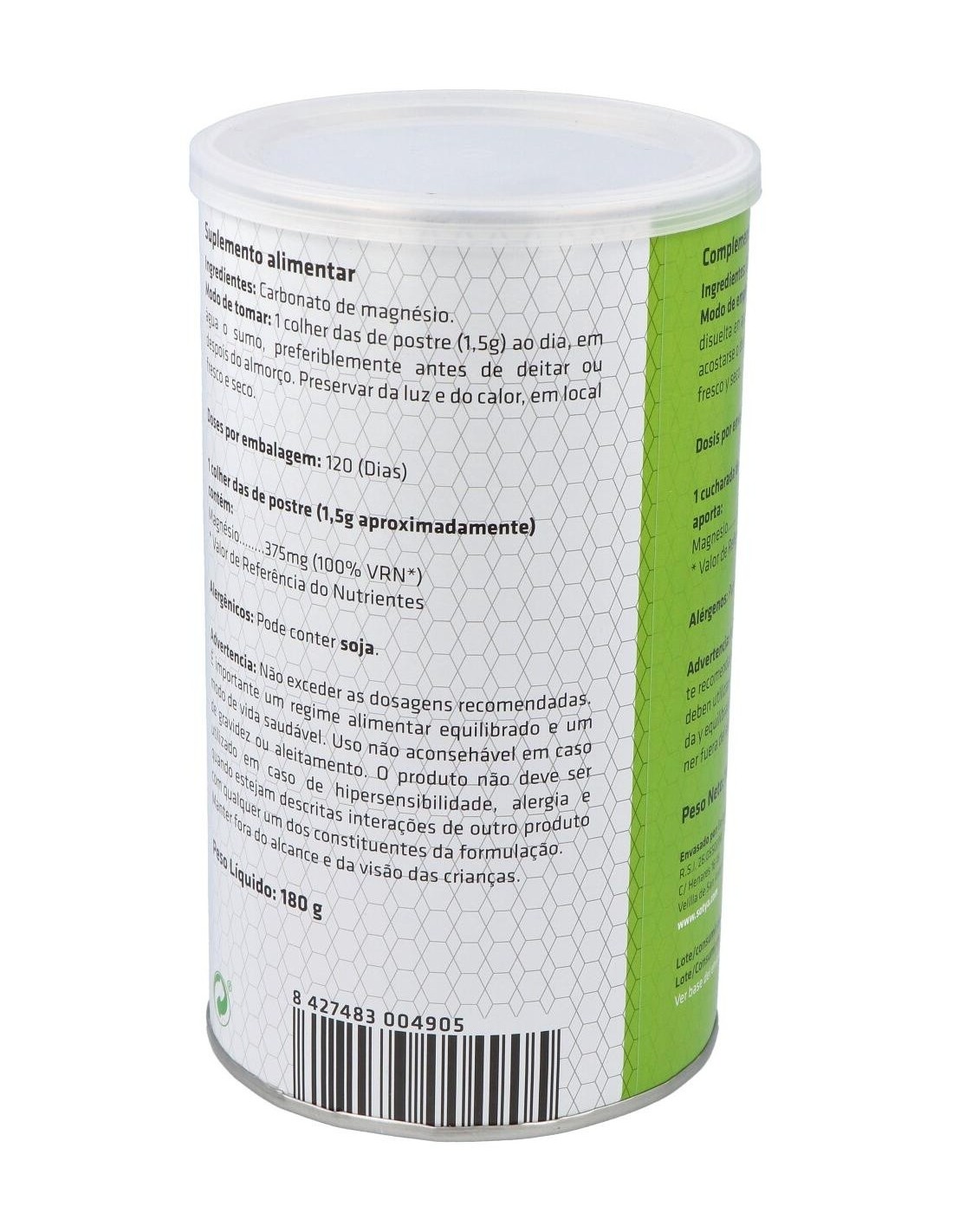 Cada dosis de una cucharada (1,5g aproximadamente) aporta 300mg de magnesio (100% CDR).