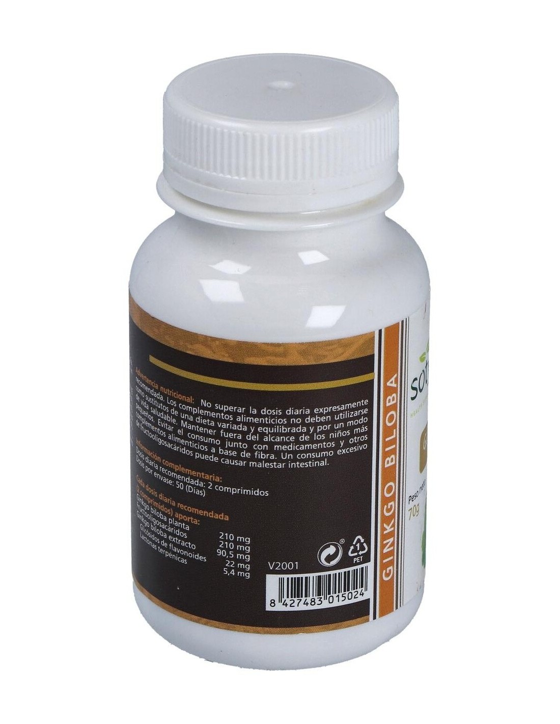 Complemento alimentcio a base de Ginkgo Biloba. Las hojas de ginkgo son ricas en glucósidos flavonoides, quercitina, luteolina, catequinas, resina, aceite esencial, terpenos y lípidos. Estas sustancias actúan en el sistema circulatorio tratando problemas vasculares y trastornos circulatorios (gran vasodilatador periférico, cerebral y antiespasmódico). Ayuda a disminuir la permeabilidad de los capilares, reduciendo el edema. Posee propiedades venotónicas, tonificando las paredes de las venas, y facilitando el retorno sanguíneo. En ocasiones puede aparecer hipotensión, cefaleas, urticaria. No tomar embarazadas y lactantes. Interacciones con heparina, anticoagulantes orales y antiagregantes plaquetarios.